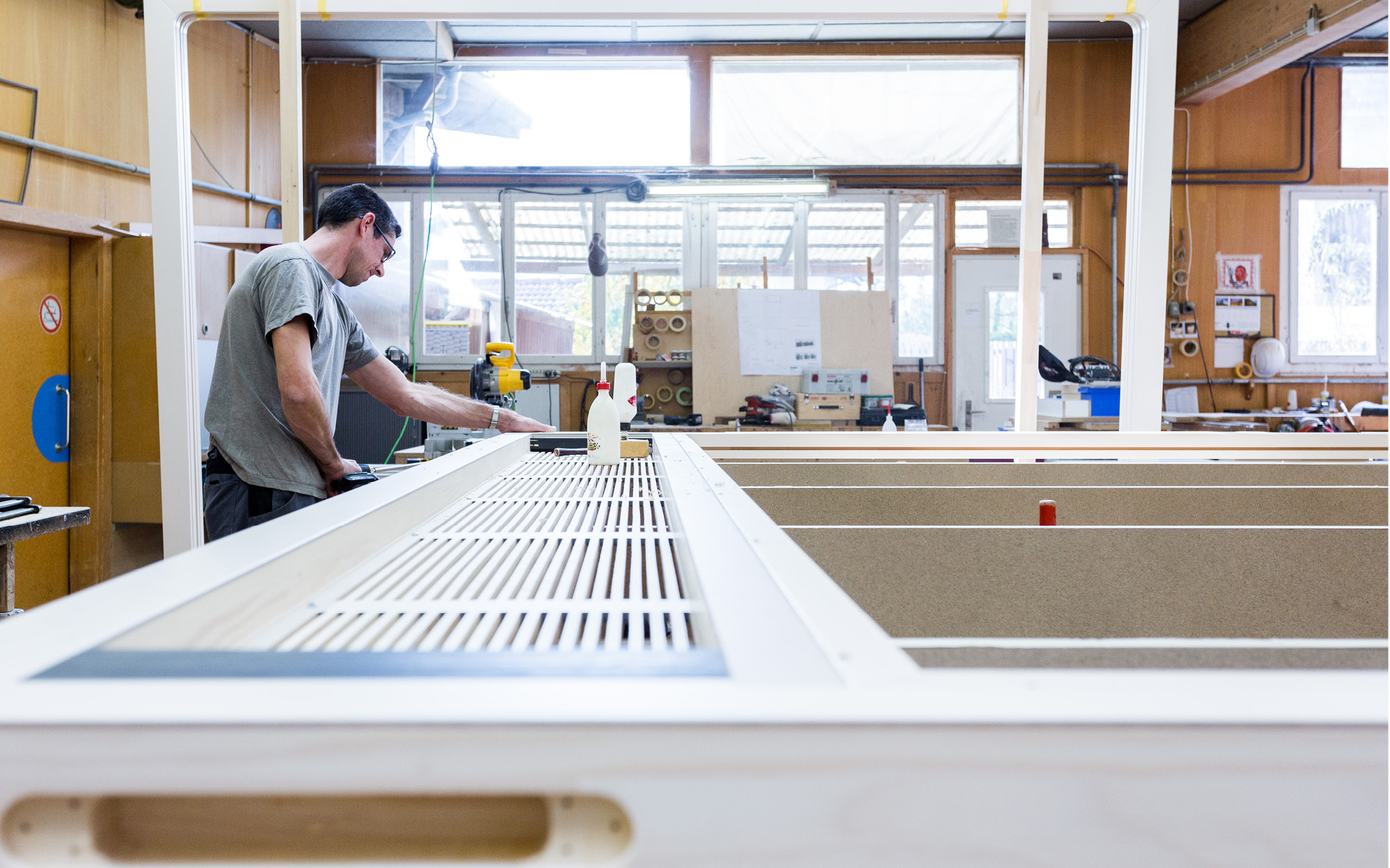 Handwerkskunst im Zusammenspiel mit zeitgemässer Fertigung und edlen Materialien — das zeichnet unsere Schreinerei aus. Präzise, termintreu, nachhaltig und in höchster Qualität.
