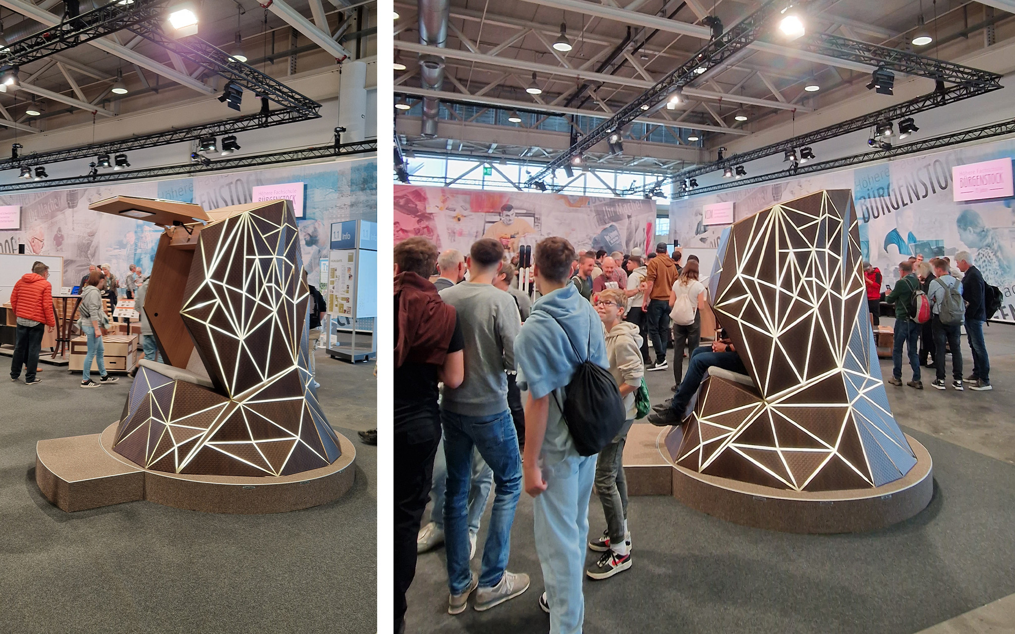Die HOLZ war dieses Jahr auch Gastgeberin der beeindruckenden WorldSkills, bei denen die weltbesten jungen Nachwuchsschreiner*innen ihr Können live und im Wettkampfmodus unter Beweis stellten. V. a. unsere Lernenden waren fasziniert vom Tempo, der Präzision und der Handwerkskunst! Mit von der Partie war natürlich auch der imposante Pod-Chair, den wir für den VSSM produziert haben — Nachwuchsgewinnung, die zukünftige Schreinerherzen höherschlagen lässt.