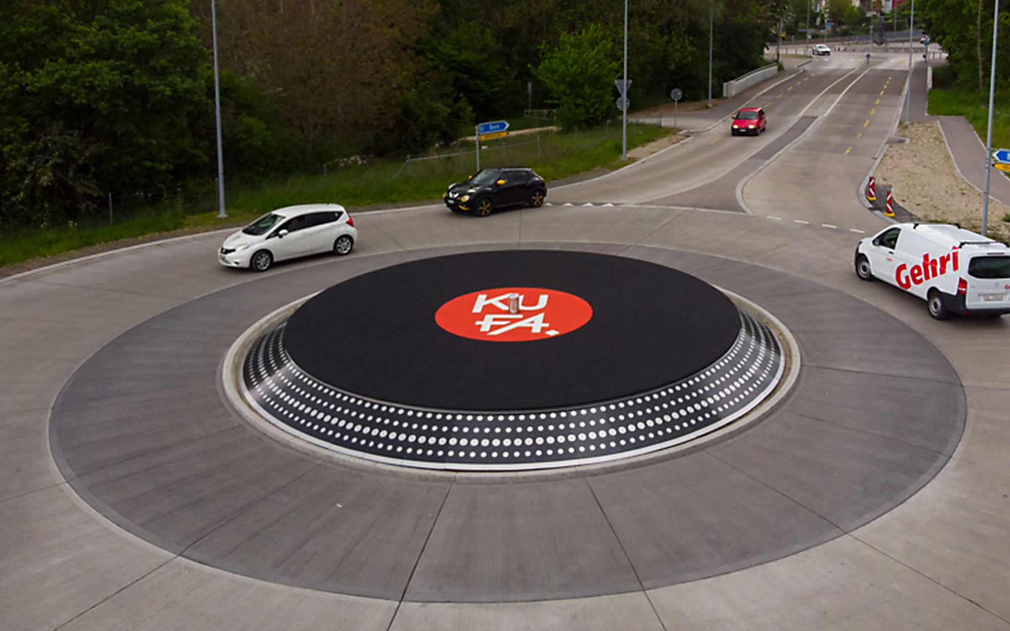 We support culture, not financially but with our know-how and with material donations to the Kulturfabrik – KUFA, for short – in Lyss. And we’ve been doing this for more than 10 years. A good example is the recent project from the Kulturfabrik (‘Culture Factory’) in Lyss: a new roundabout developed by Marc Gehri together with voluntary helpers around the KUFA and realized with the help of a variety of companies. This project has quickly found its way around the world both in the music scene and in the press. We would like to congratulate everyone involved in this successful and unique project. Only idealistic realists can bring such things to fruition! BIG UP TO THE CREW \o/
