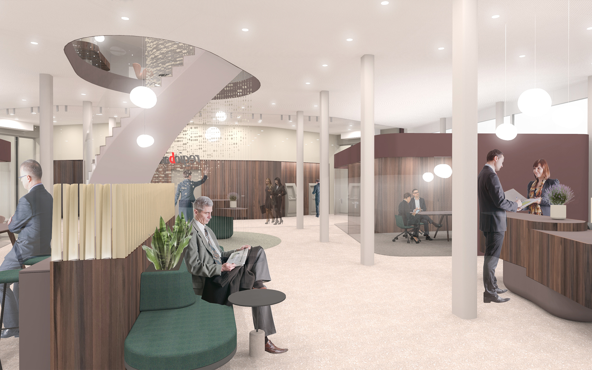 Raiffeisen Gros-de-Vaud Echallens, headquarters, customer zone / working Environment, 2015 – 2020