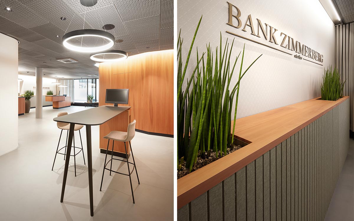 “Direct paths — lean structures”: What applies to Bank Zimmerberg was also expressed by Gehri’s planning team in the interior design. The paths are direct, the processes clear and extremely intuitive. Direct decision-making channels were also practiced during the project and made the collaboration between the client, the site management and the interior designers very uncomplicated and pleasant.