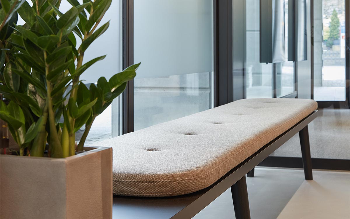 Customers are welcomed at the new village square in generous spaces and yet find all services in a very close proximity. The classy materialization and the simple design highlight the competence and dynamics of the company. As a subtle continuation of the Seehallen, the office at the Dorfplatz proves to be a place with its own character, reflecting the company in its many facets.