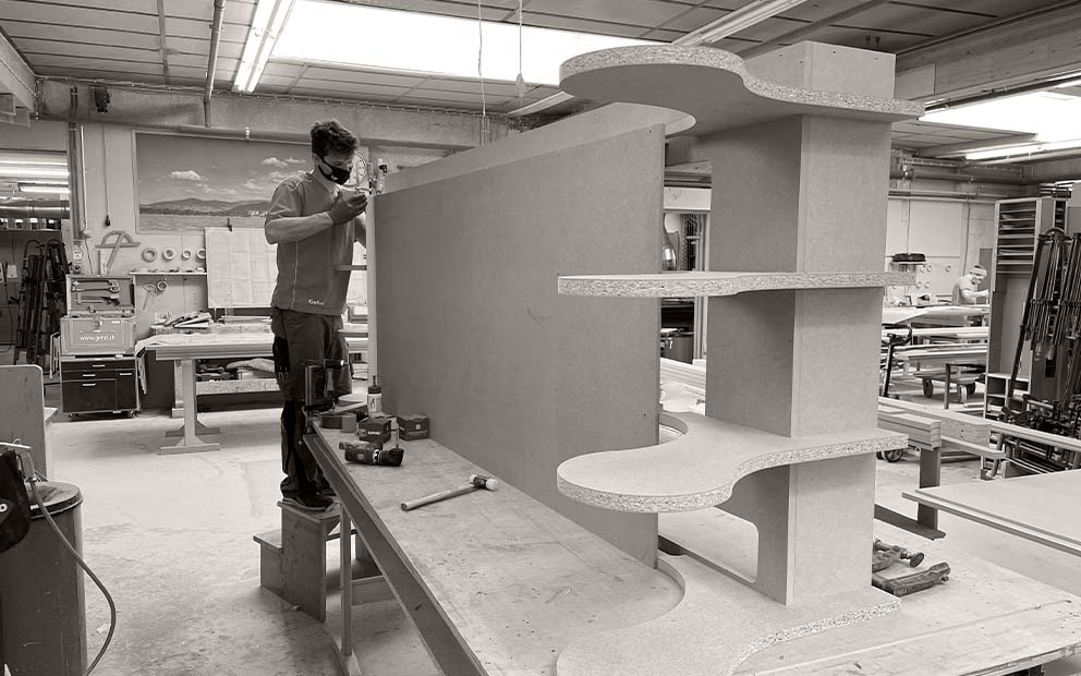 Based on their design, Gehri’s realisation team produced the sophisticated interior fittings. A good sense for beautiful detail solutions, craftsmanship in combination with modern production technology and great know-how in surface technology distinguish our team.