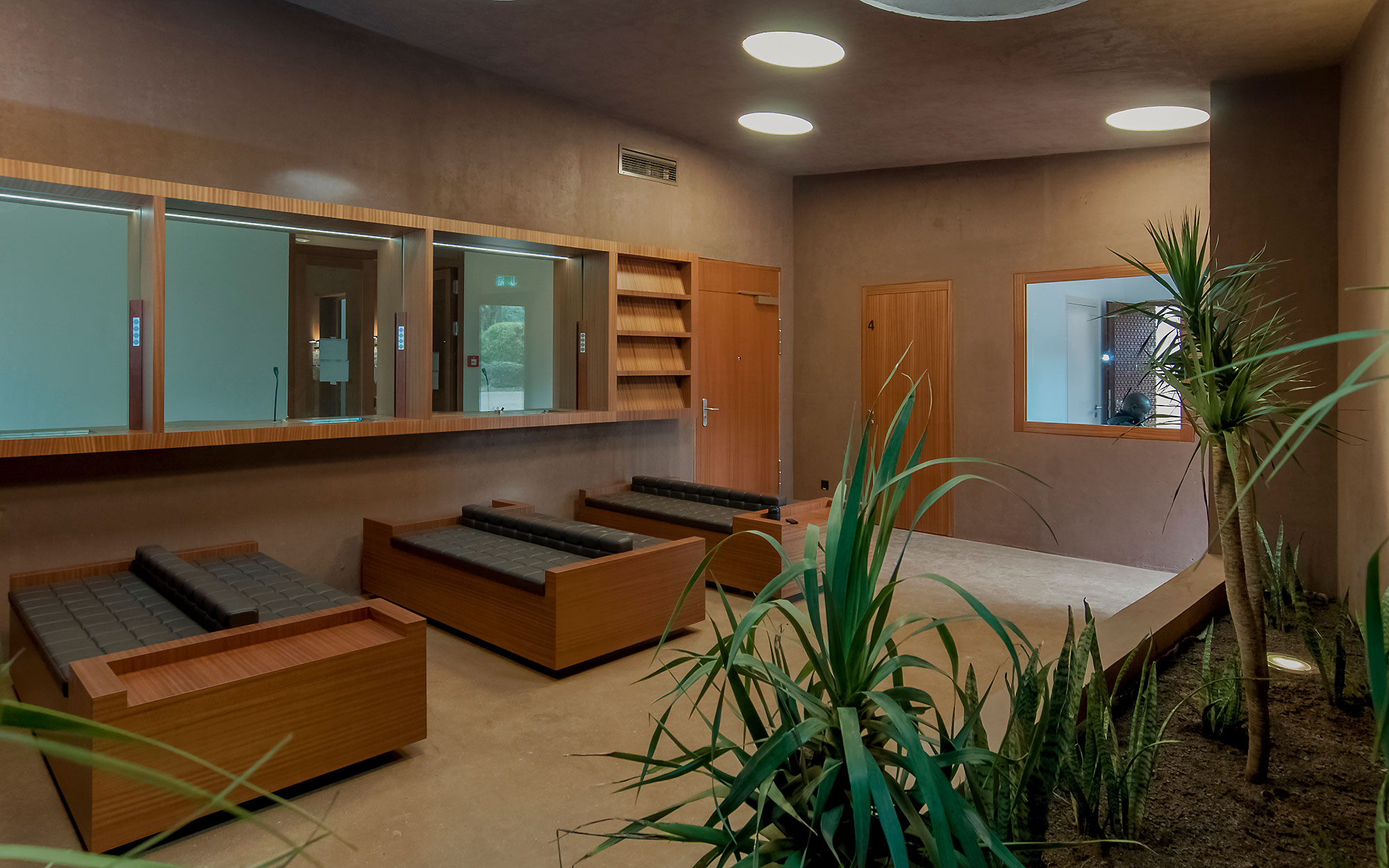 We produced high-quality interior fittings for the Swiss embassy in Nairobi, packed ready for overseas travel and assembled them on arrival. The high-security visa counters and diverse furniture elements are in elegant sipo veneers, typically African.
