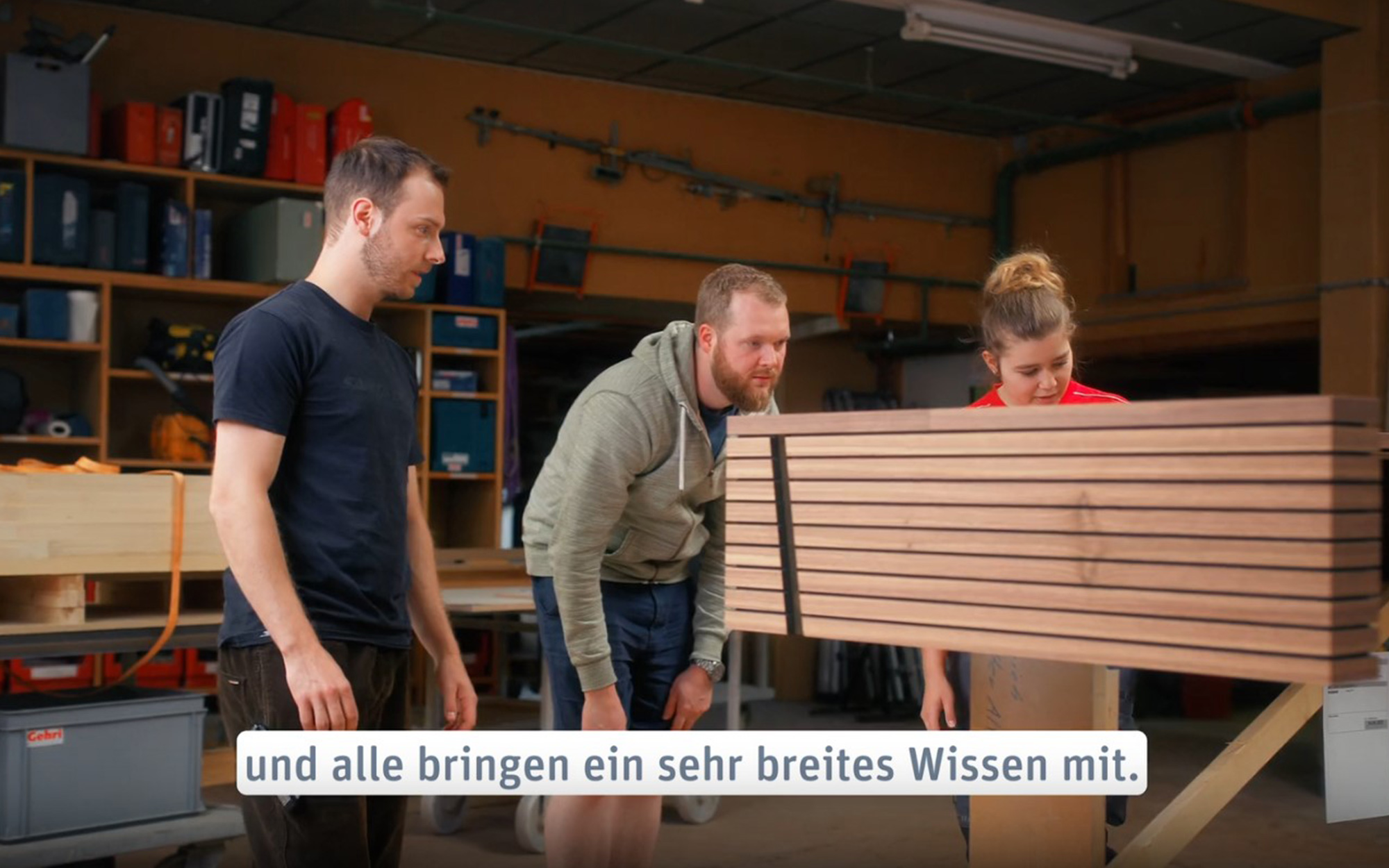La relève compte — c’est pourquoi nous formons six apprenti·e·s dans notre menuiserie. De plus, nous accueillons régulièrement des stagiaires de l’École supérieure du Bois de Bienne et leur offrons l’opportunité de continuer à se développer avec nous. Nous avons donc été d’autant plus heureux d’accueillir le tournage de la vidéo pour la Haute école spécialisée bernoise (BFH), qui souligne l’importance de la formation professionnelle supérieure dans le domaine du bois. Nous apprécions de faire partie de cet important projet qui encourage les jeunes menuisières et menuisiers à franchir la prochaine étape et à développer davantage leur potentiel.