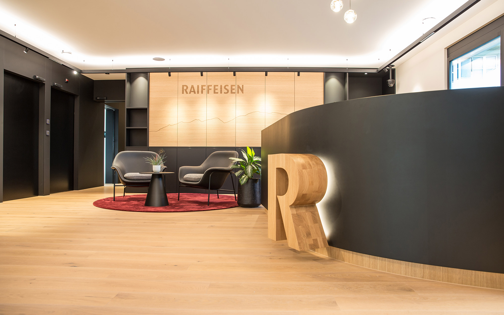 Nous sommes ravis que la Banque Raiffeisen d’Obwald nous ait choisi comme partenaire pour l’aménagement intérieur de ses projets de modernisation à Alpnach, Sarnen (nouvelle construction) et Kerns. Sur la base des concepts d’Architekturwerk ag et Werkunion, nous avons créé des solutions haut de gamme pour le mobilier, les revêtements muraux et les plafonds, reflétant l’exigence de la Banque Raiffeisen en matière de service à la clientèle personnalisé et tourné vers l’avenir.