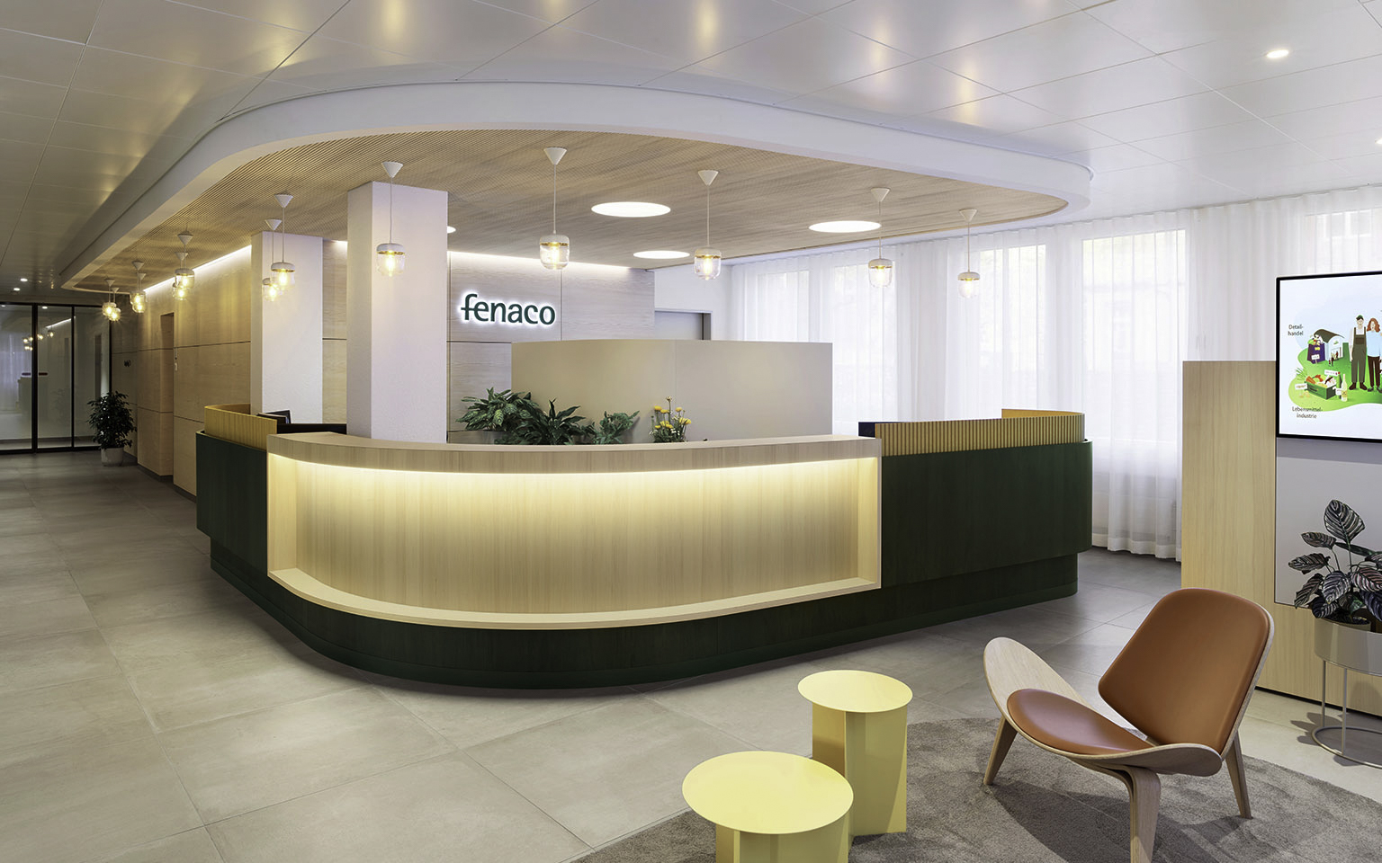 Un nouvel espace d’accueil pour fenaco, une coopérative agricole suisse d’envergure internationale — réalisé avec des matériaux de grande qualité pour un aménagement et une matérialité inspirés de la nature.