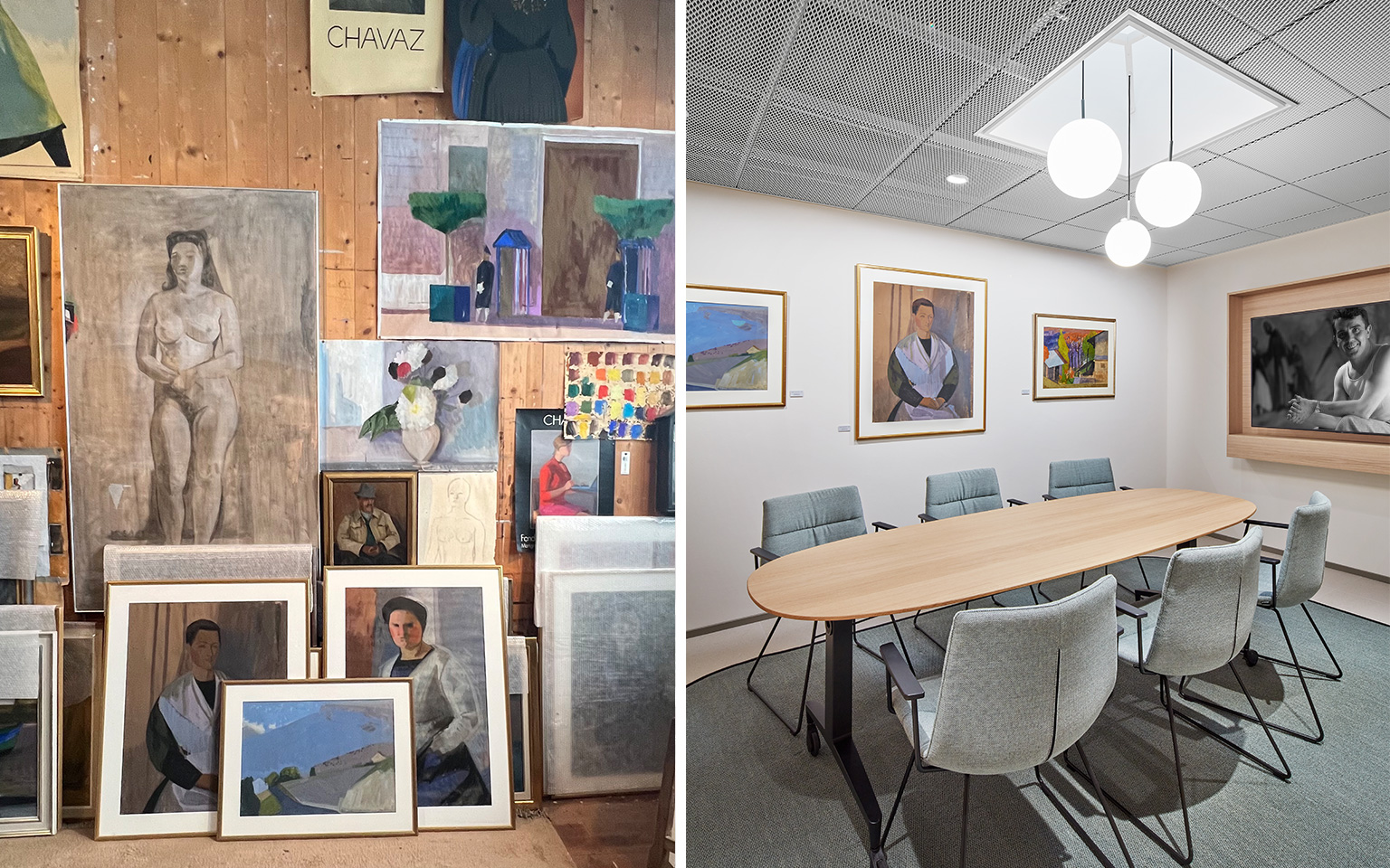 Dans l’histoire de l’art suisse, l’«École de Savièse» est un terme générique bien établi pour désigner une série d’artistes qui ont travaillé, trouvé l’inspiration pour leurs œuvres et parfois vécu dans la commune de Savièse dans le canton du Valais. Dans ce contexte, la Banque Raiffeisen rend hommage dans ses salons aux artistes Marguerite Burnat-Provins (1872-1952), Ernest Biéler (1863-1948) et Albert Chavaz (1907-1990). Nous avons eu la chance de visiter l’atelier d’Albert Chavaz qui, depuis 1990, se trouve intact, comme si l’artiste avait quitté l’atelier récemment.