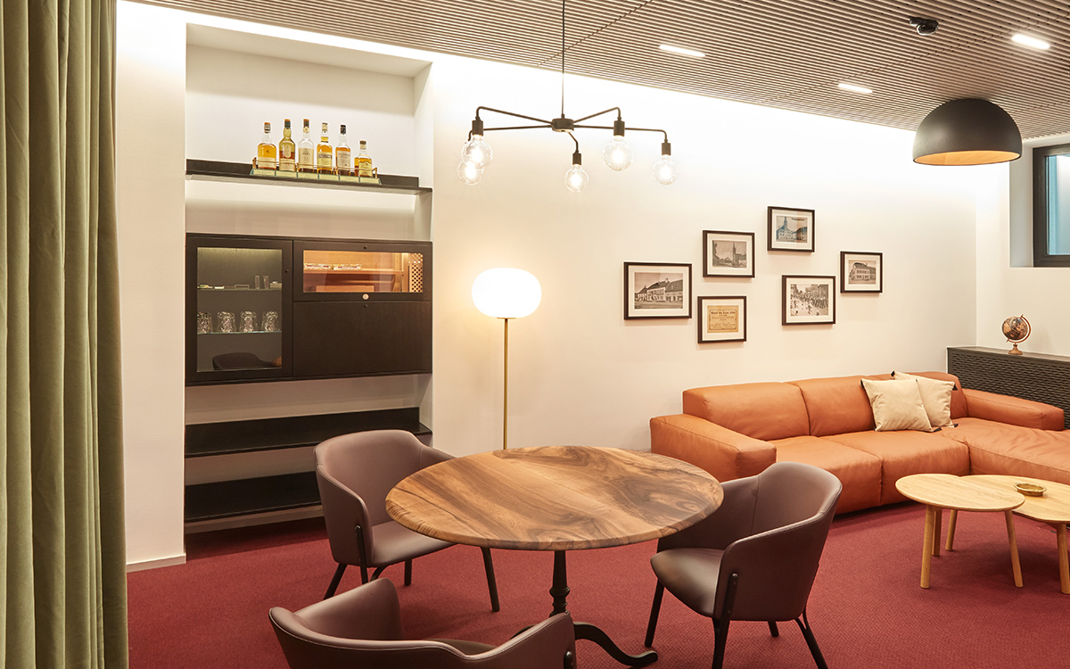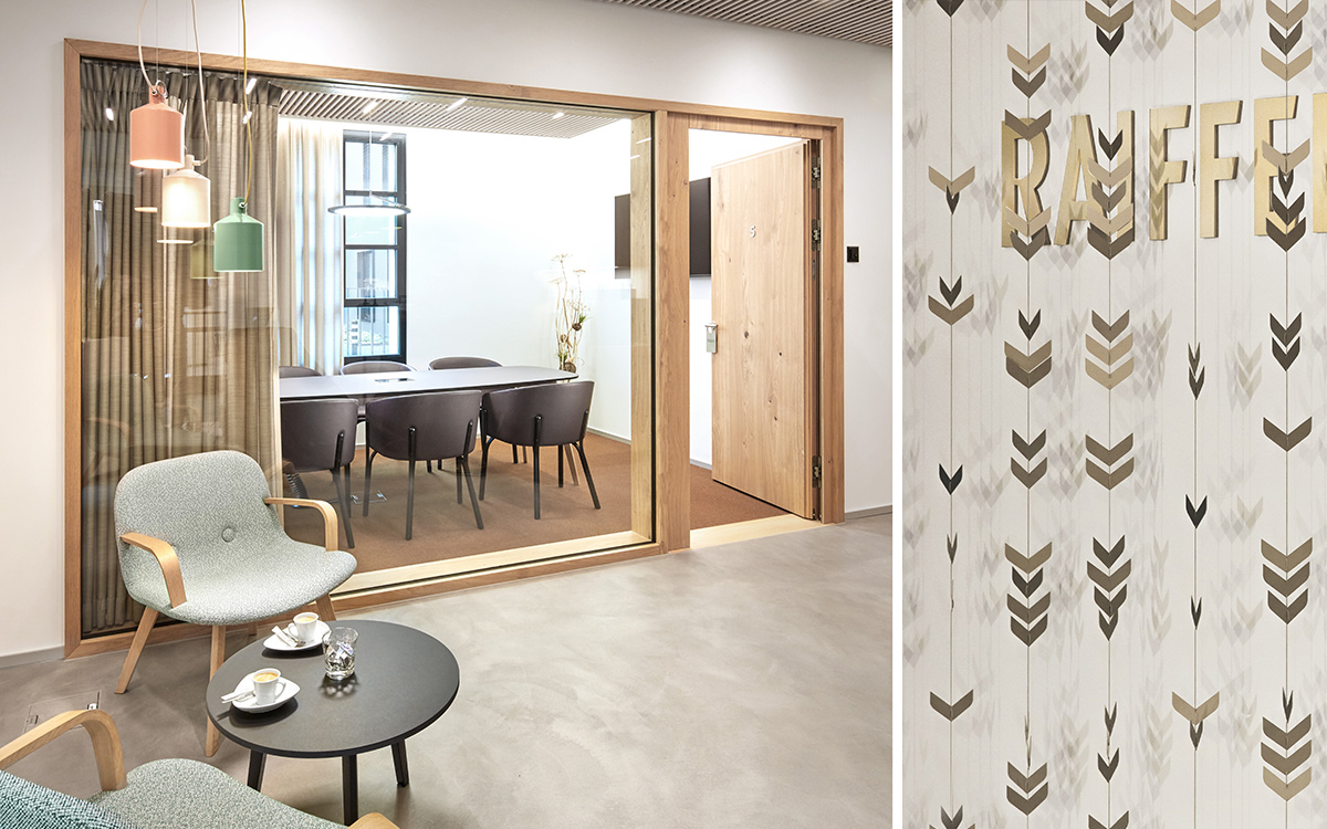 Par ailleurs, l’ancienne Auberge du Lion d’Or fut le point de départ pour le concept des salons de conseil. En effet, nous avons eu l’idée d’intégrer les portes et les vitrages dans des cadres, avec un système de rideaux pour la discrétion et une signalétique spécifique, reprenant de manière contemporaine le langage d’une auberge de campagne.