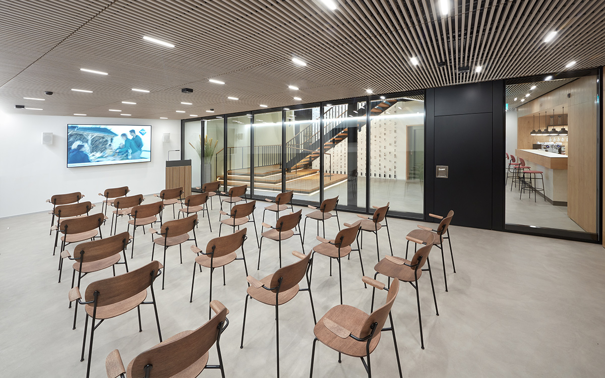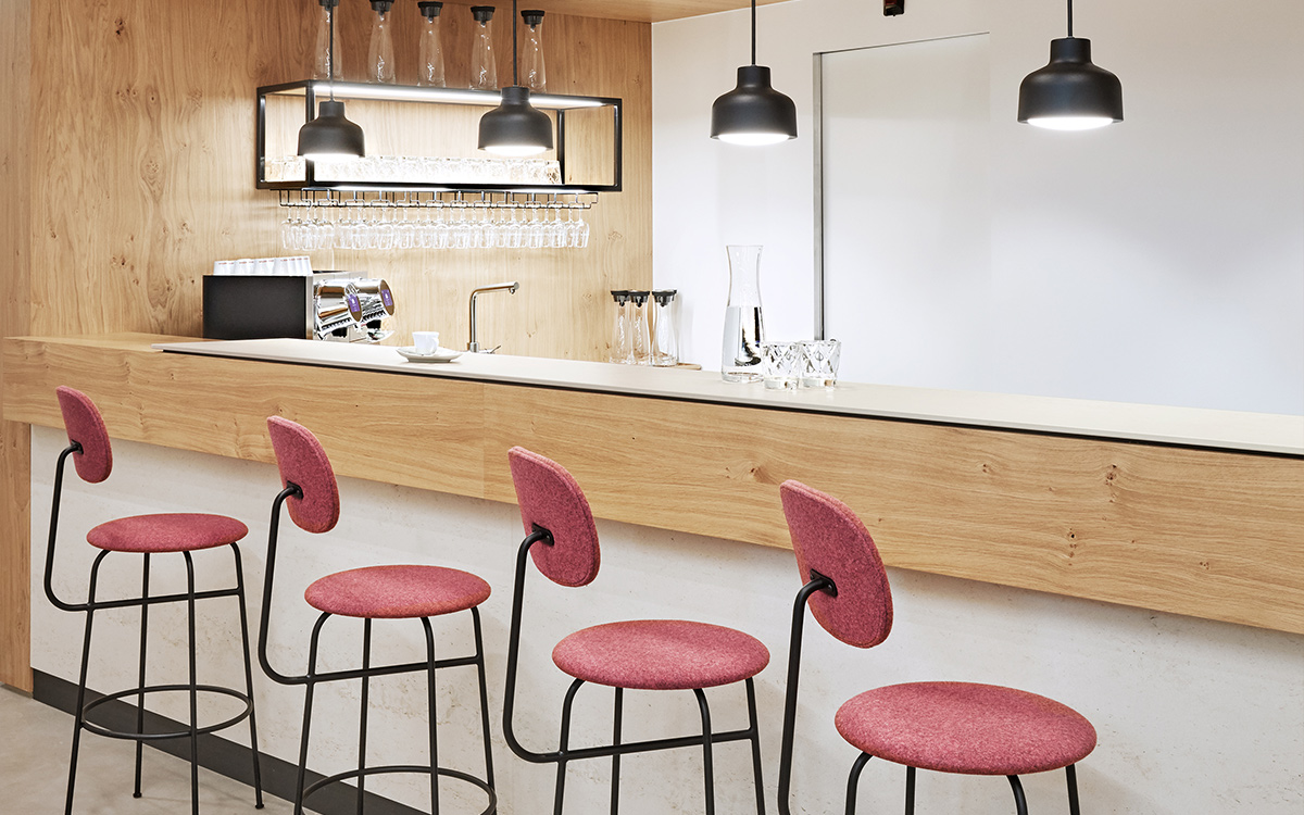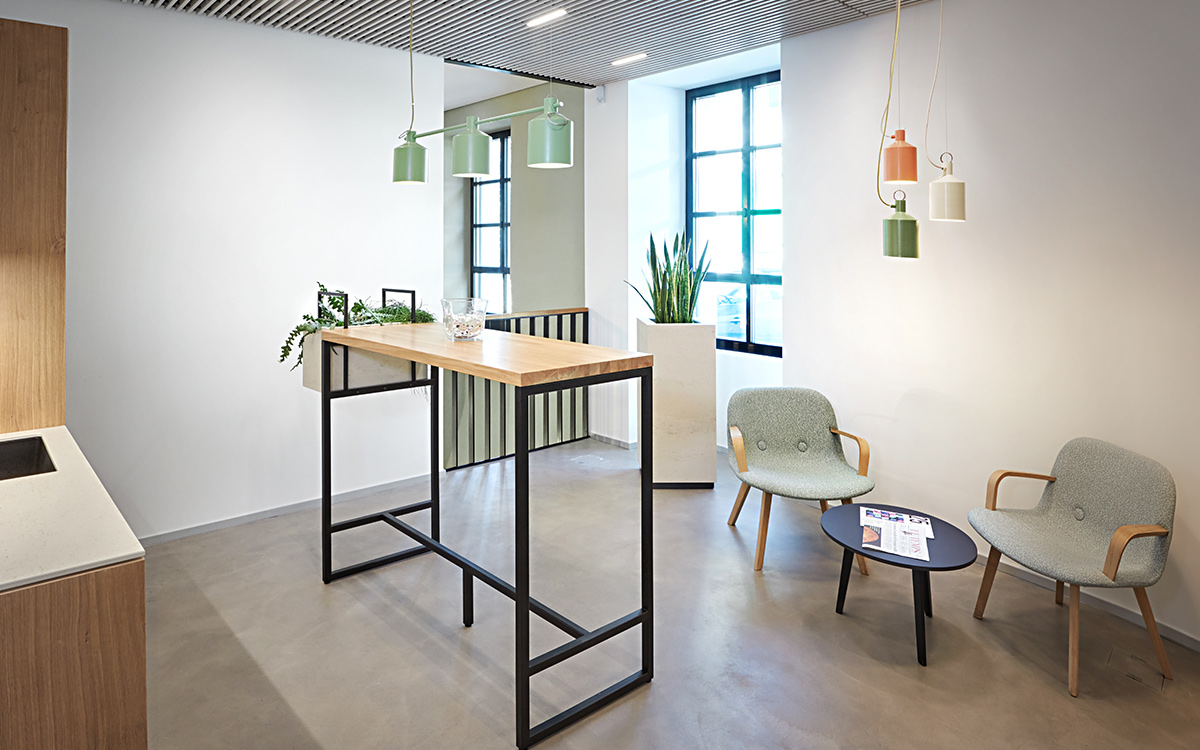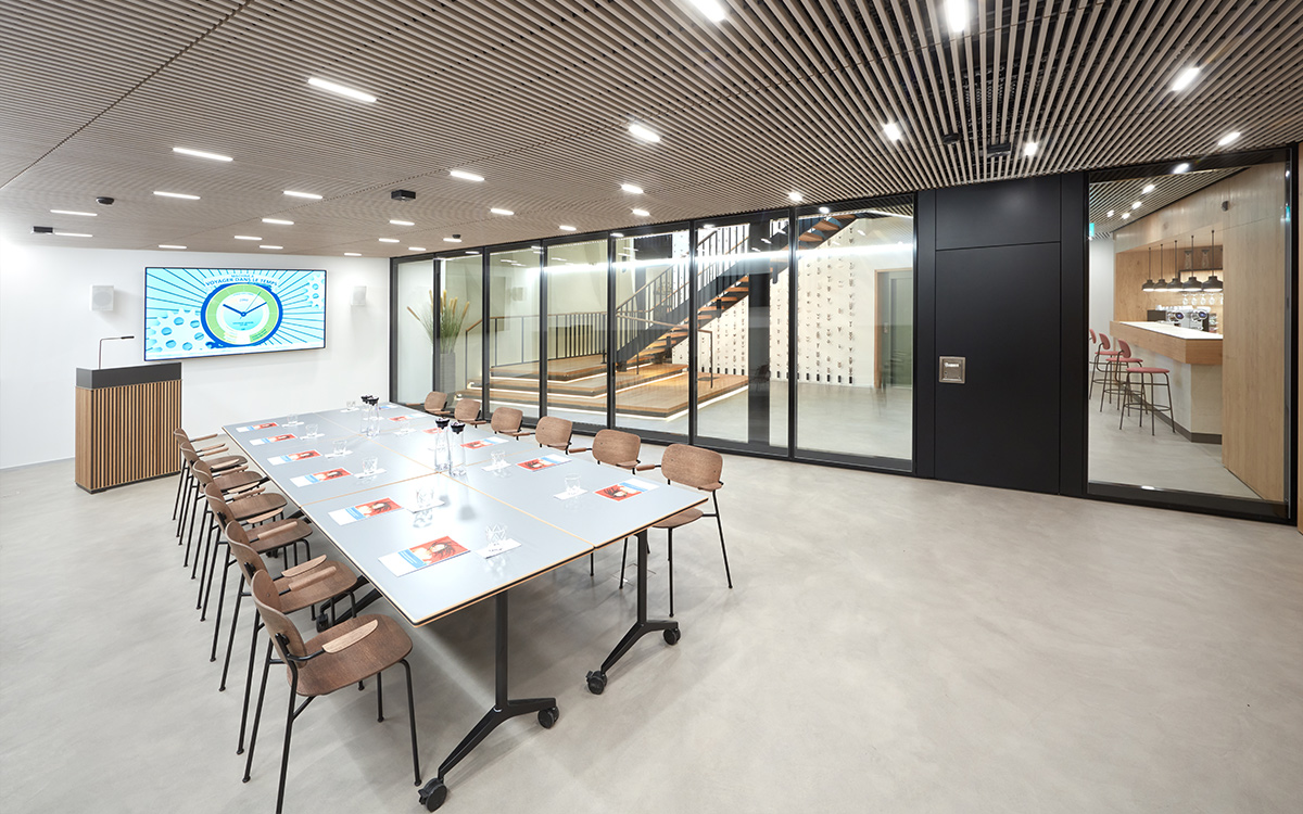 De plus, une attention toute particulière a été dédiée à l’éclairage des espaces clientèle : en collaboration avec un éclairagiste, Ulrich Reichardt, nous avons développé un spot LED s’adaptant et se fondant parfaitement dans le plafond en lamelles de bois, apportant une lumière homogène et agréable.