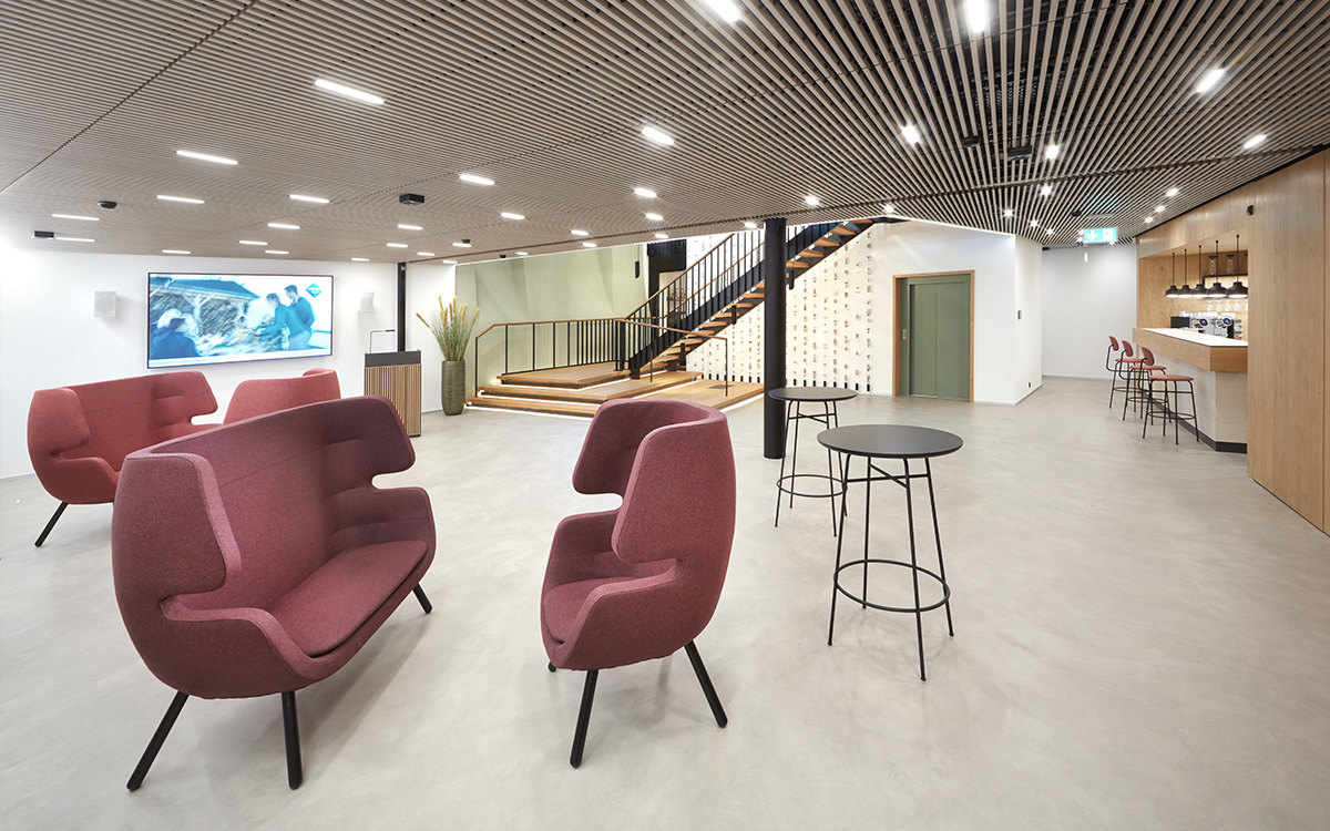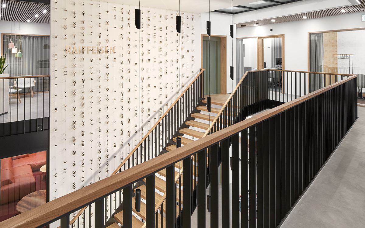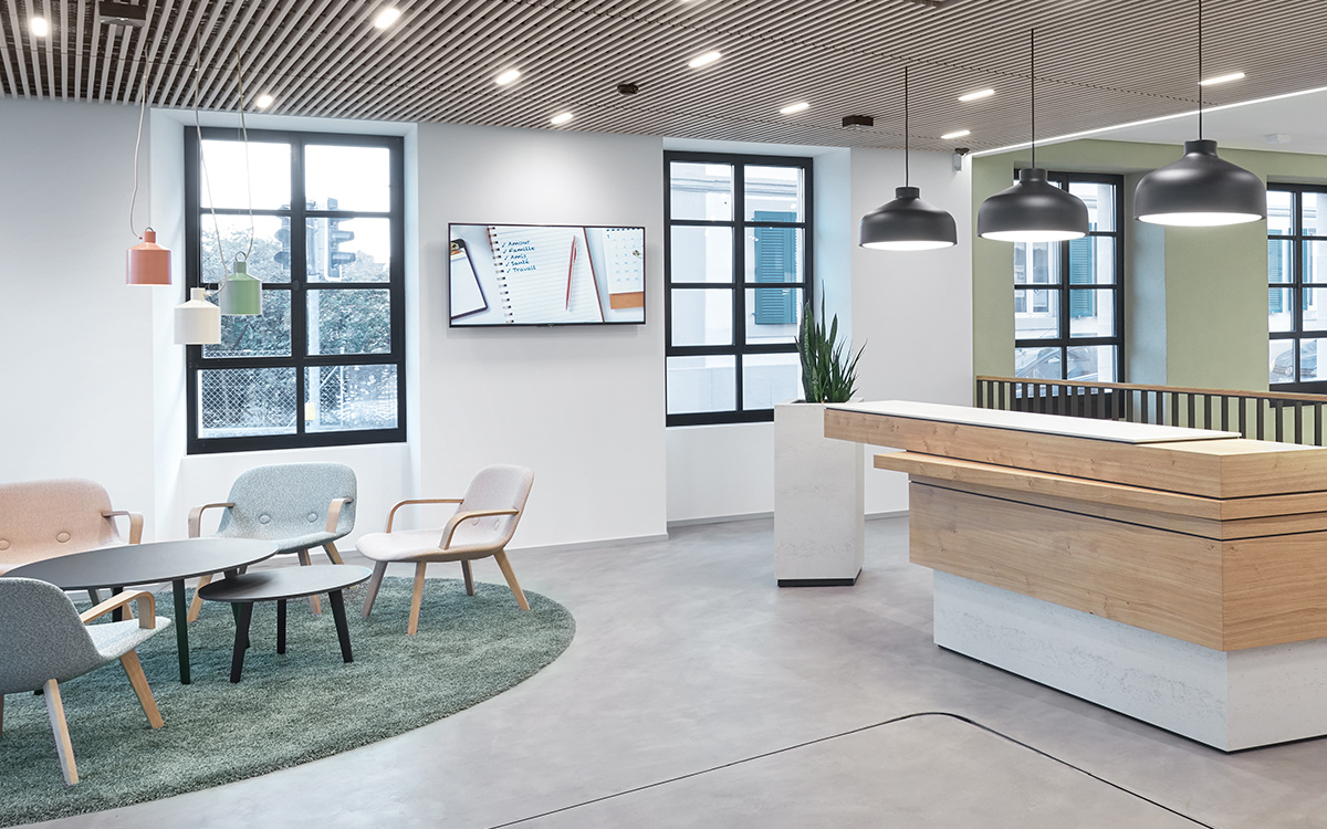 Nous avons été mandatés pour l’aménagement intérieur, l’organisation des espaces et fonctions, le concept design ainsi que l’atmosphère (Look & Feel) des espaces clientèle, des espaces collaborateur et leur nouveau monde de travail. Notre mandat comprenait également le concept d’éclairage, le développement de l’illumination de base sur mesure, ainsi que la création du puits de lumière et de la signalétique.