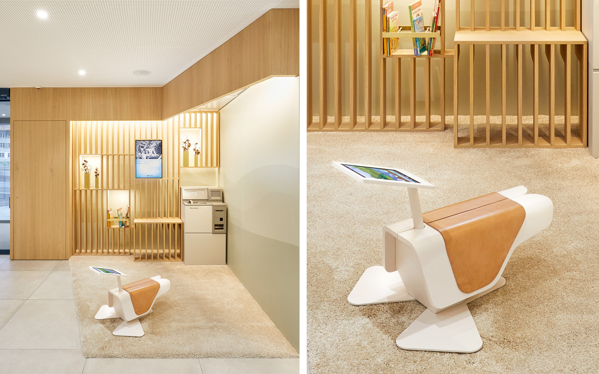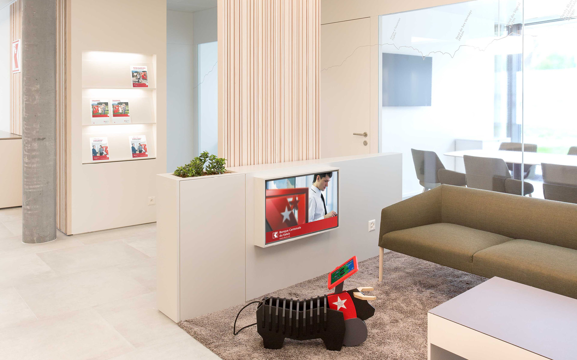 Les jeunes clients apprécient aussi qu’on s’occupe d’eux. Pendant que les parents s’occupent des activités bancaires ennuyeuses, nos espaces pour enfants divertissent et créent de la vie dans les zones clientèle.