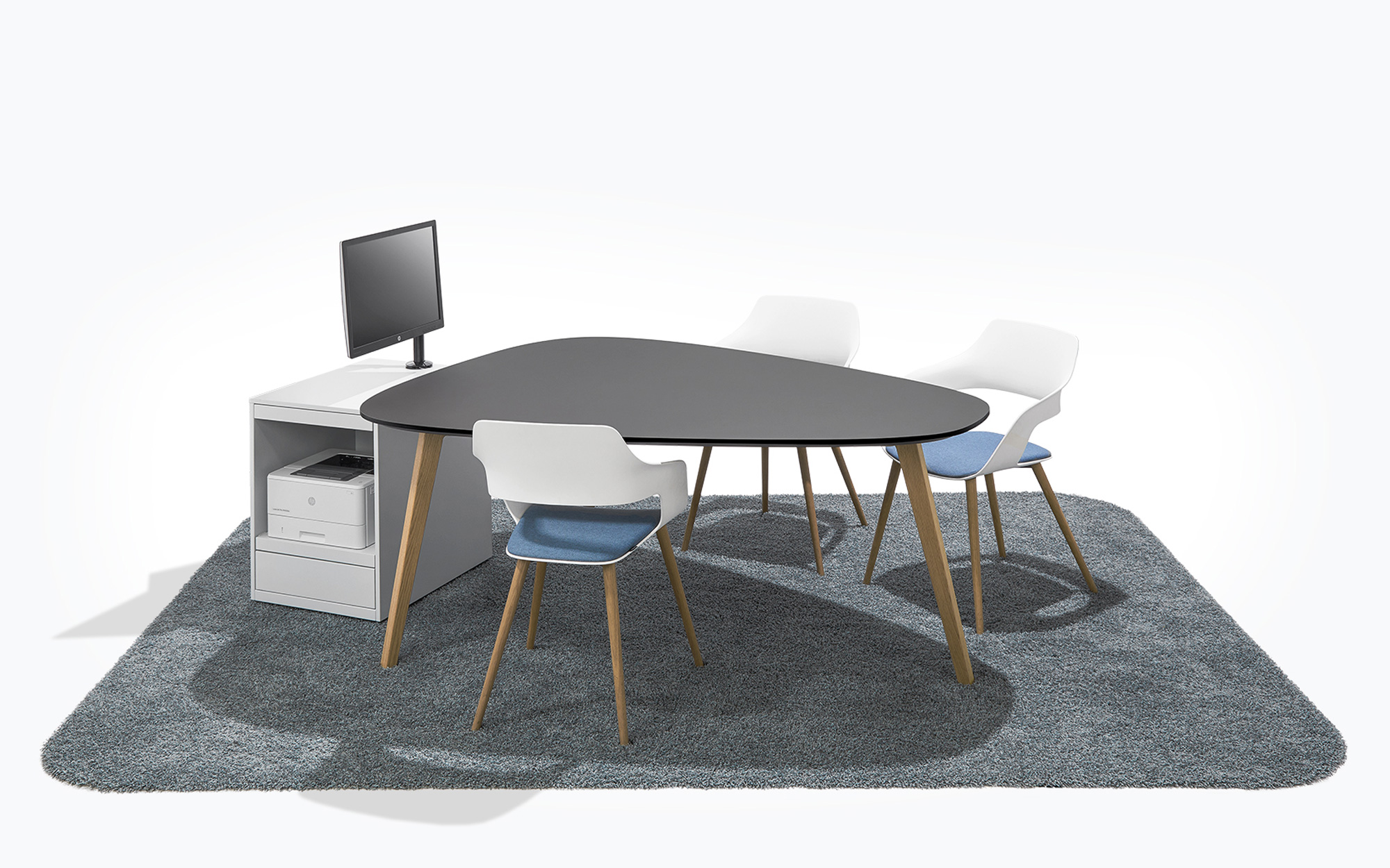 Le design intemporel et l’harmonisation de la matérialisation avec votre projet distinguent notre table Vola et en font un «compagnon» bienvenu dans les salles de réunion et les espaces de vie.