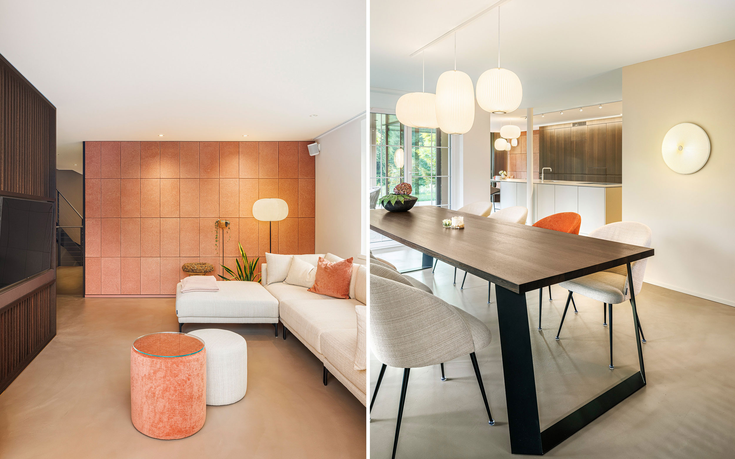 Die Grenzen zwischen drinnen und draussen lösen sich auf — Licht, Luft und Grün ziehen ein. Gleichzeitig wurde der Wohnbereich im Erdgeschoss neu gedacht: klar gegliedert und offen gestaltet, mit dem Ziel, eine hohe Aufenthaltsqualität zu schaffen und den Aussenraum mit dem Innenraum zu verbinden.