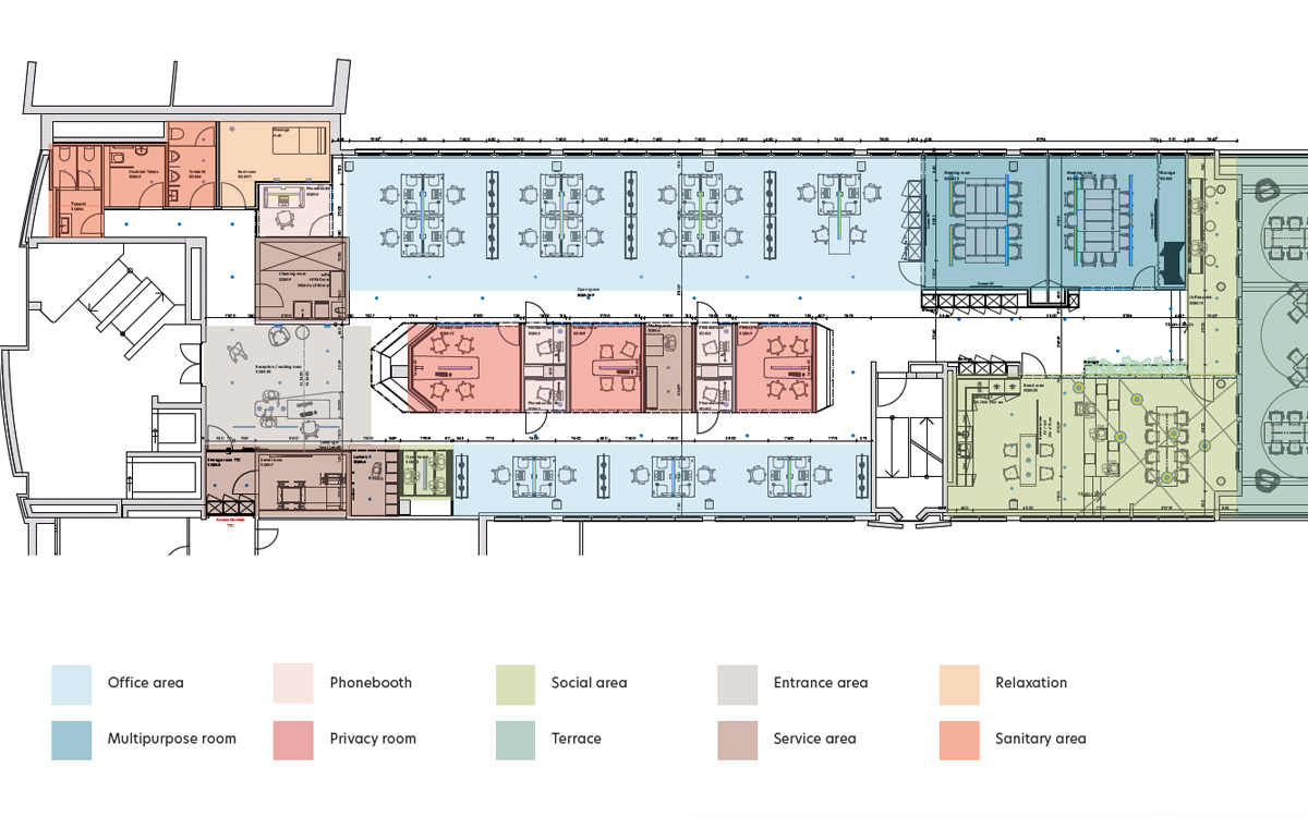 Bei diesem Projekt ging es um Flächenmanagement, Reduktion der Mietfläche um 60 % und darum, ein optimales Arbeitsumfeld für die unterschiedlichen Bedürfnisse zu schaffen.