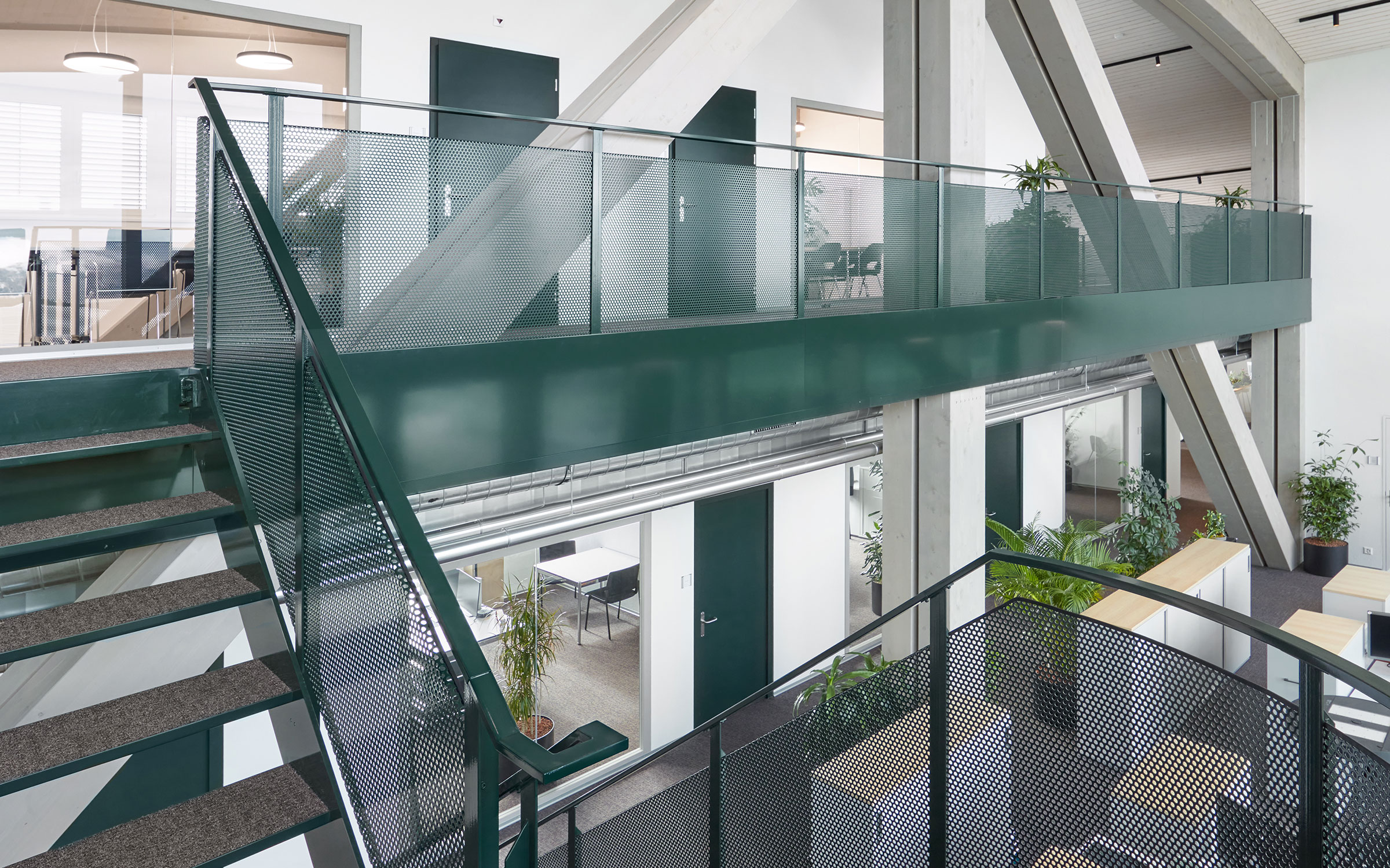 Am Produktionsstandort in Bätterkinden ist nach der Zusammenlegung zweier Standorte eine neue, spektakuläre Arbeitswelt über der bestehenden Produktion entstanden. Durch den Aussenbezug und das begrünte Flachdach kommt eine Stimmung auf, wie wenn man draussen arbeiten würde — dieser Ansatz steht für das Unternehmen, das sich der Lagerung, Aufbereitung und Logistik von Früchten, Gemüse und Kartoffeln verschrieben hat. Die Zusammenführung der Teams an einem Standort und die inspirierende Umgebung sind ein positiver Change für die Unternehmenskultur und das Employerbranding.