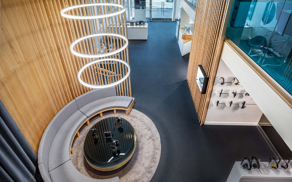 Die Räumlichkeiten der Sennheiser Stores sind viel mehr als bloss Ladenfläche — in verschiedenen Bereichen werden ihre Produkte präsentiert und für Kundinnen und Kunden erlebbar gemacht. Die unterschiedlichen Ansprüche dieser Präsentations- und Erlebnisbereiche erfordern ein differenziertes Beleuchtungskonzept. Unser Anspruch ist es, jeden Raum wahrnehmungsorientiert zu gestalten und mit dem Spiel von Licht und Schatten die Produkte, Oberflächen und Materialien hervorzuheben.