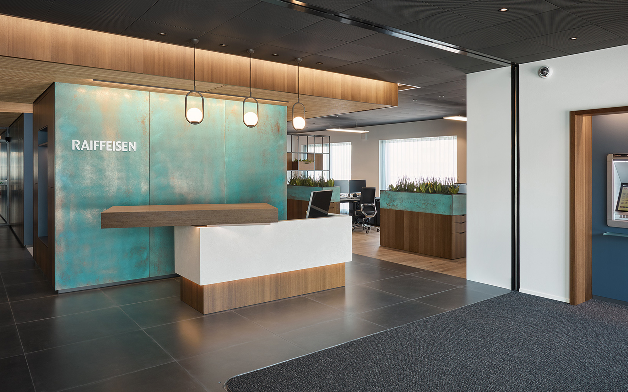 Nach der erfolgreichen Sanierung der Kundenzone des Hauptsitzes im Jahr 2008 hat uns die Raiffeisenbank Möhlin erneut mit der Konzeption und Realisation der neuen Geschäftsstelle im Neubauareal des Salmenparks in Rheinfelden beauftragt.