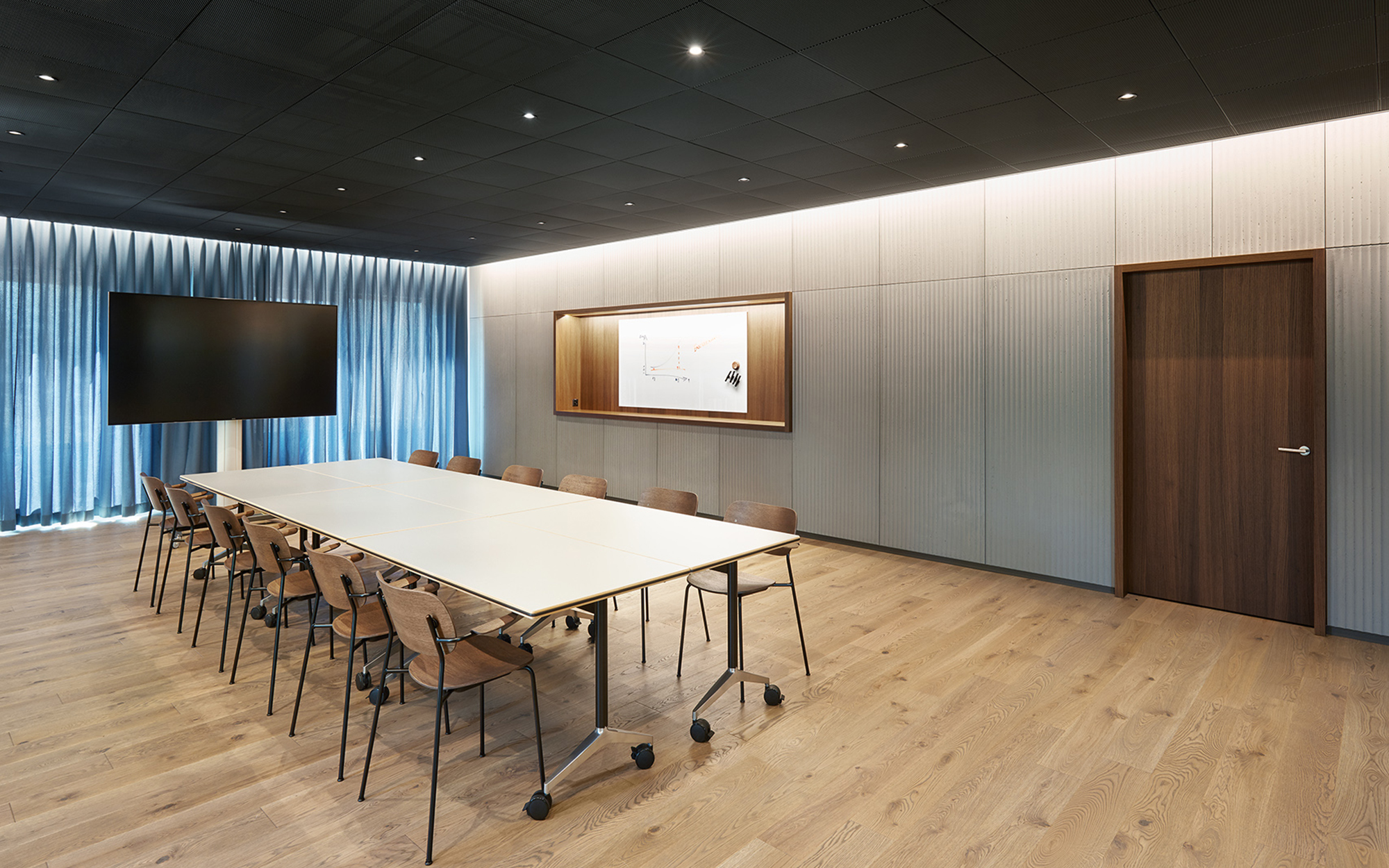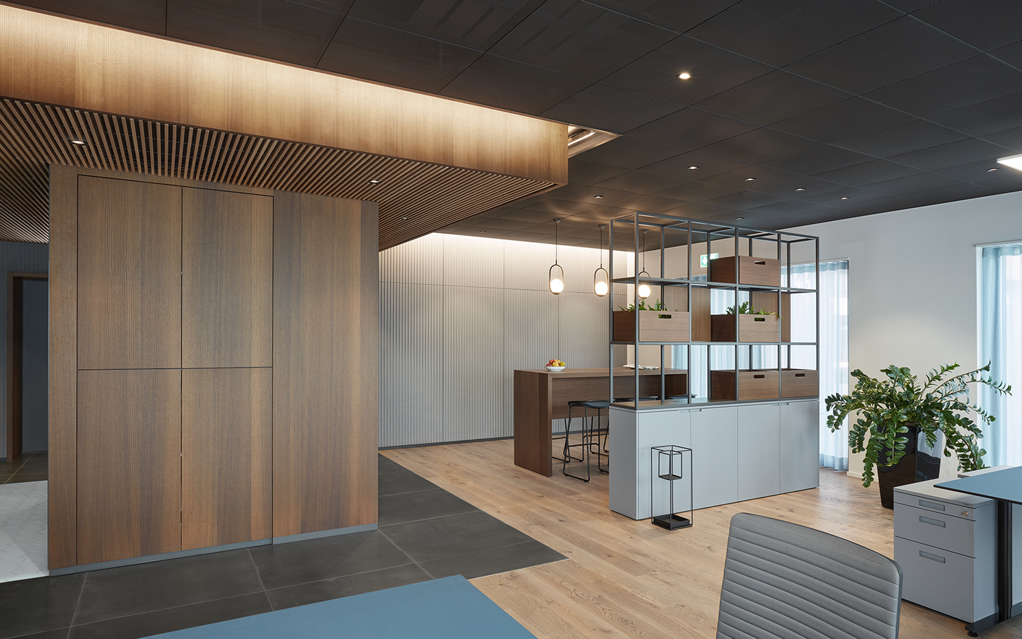 In einem repräsentativen, urbanen Umfeld bietet die Bank zusätzlich zu den Beraterräumlichkeiten einen vielseitig nutzbaren Raum für Events, Pop-Up, Ausstellungen, Vorträge und Schulungen — dies dank der flexiblen Möblierung. Im offen gestalteten Foyer haben die Berater ausserdem die Möglichkeit, ihre Kunden bei einem Kaffee an der Bar in einem halbdiskreten Rahmen zu beraten. Ein digitaler HUB für interaktive Beratungen rundet das Angebot ab. Im hinteren Bereich befindet sich ein Coworking-Space für flexible Nutzung, der zu einem späteren Zeitpunkt allenfalls auch den Bankmitarbeitern zur Verfügung stehen könnte.