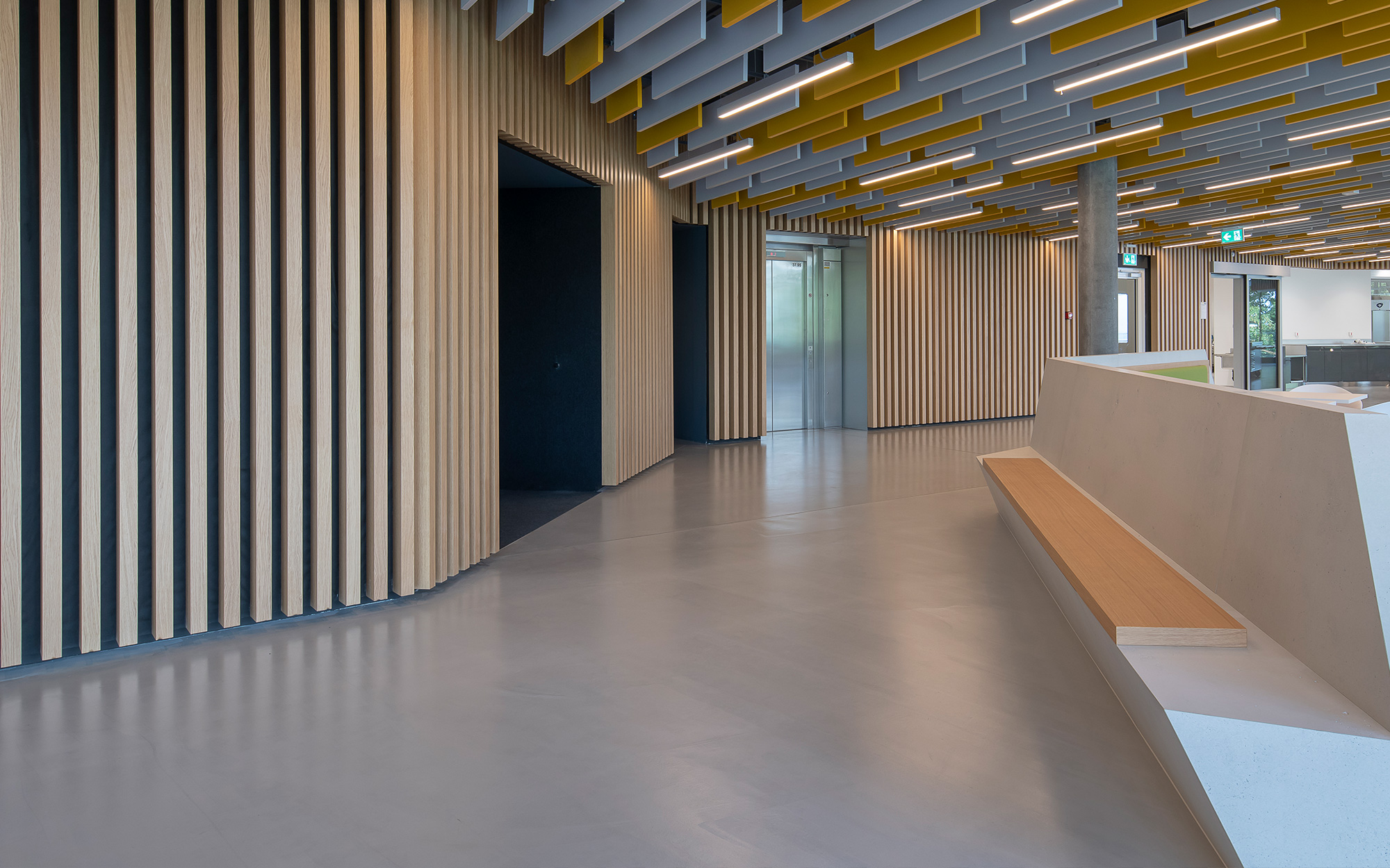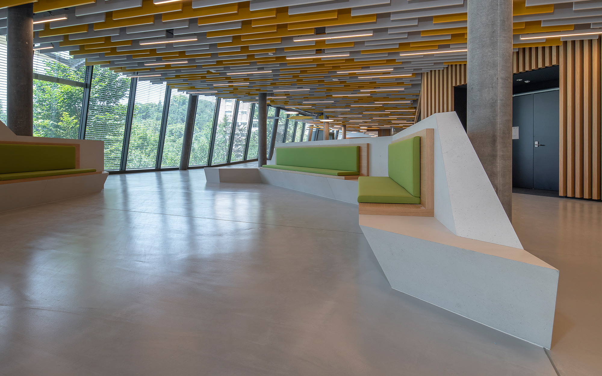 Im neuen Krebsforschungszentrum AGORA auf dem Gelände des Universitätsspitals Lausanne haben wir nach Entwurf der Behnisch Architekten Stuttgart einen Teil der Inneneinrichtung im Empfangs- und Aufenthaltsbereich realisiert. Die Grösse der einzelnen Möbel aus LightBeton und die 77 Meter lange Abwicklung der Lamellen waren eine spannende Aufgabe für unser Fachplanungs- und Produktionsteam. Wir freuen uns über das gelungene Resultat!
