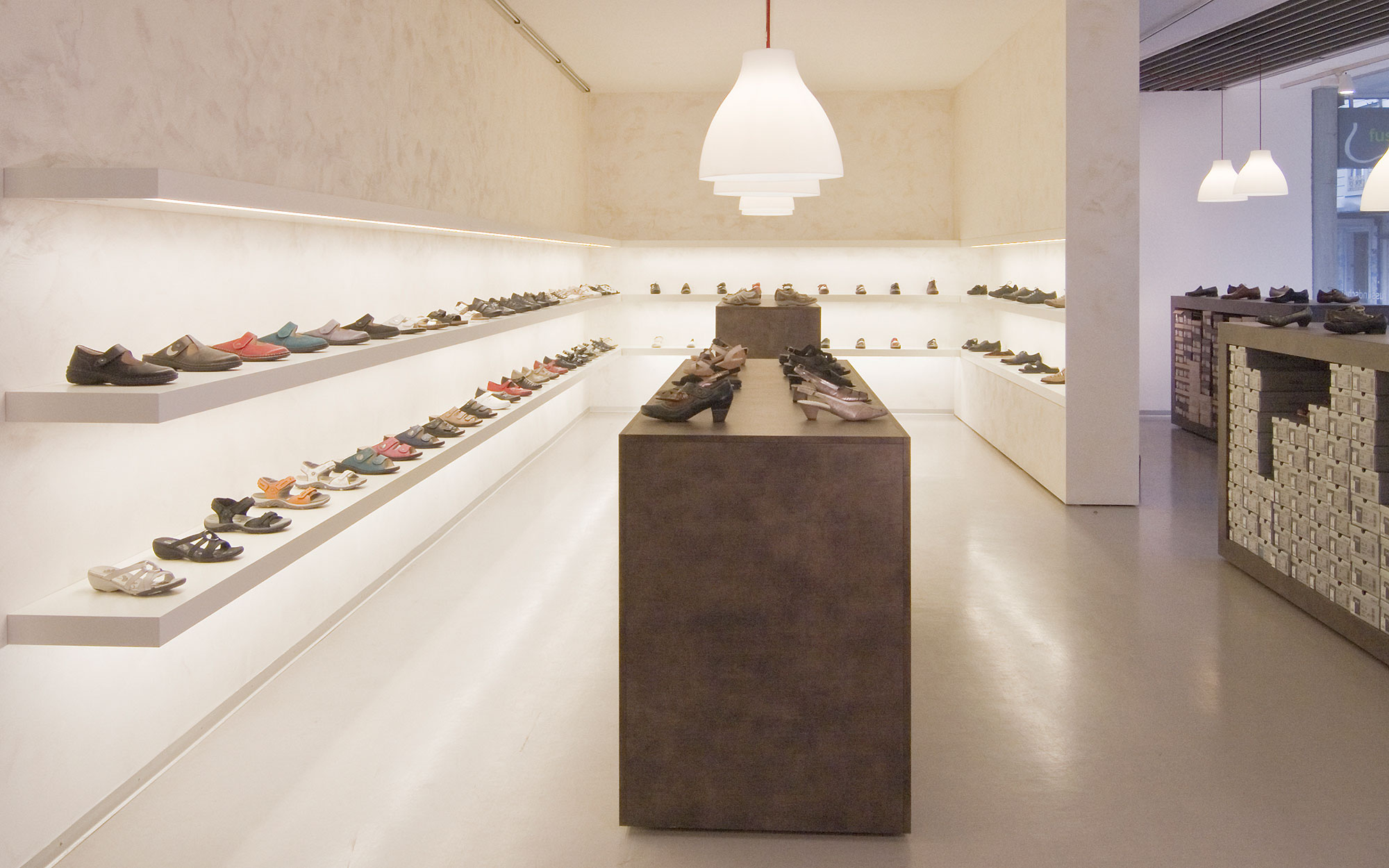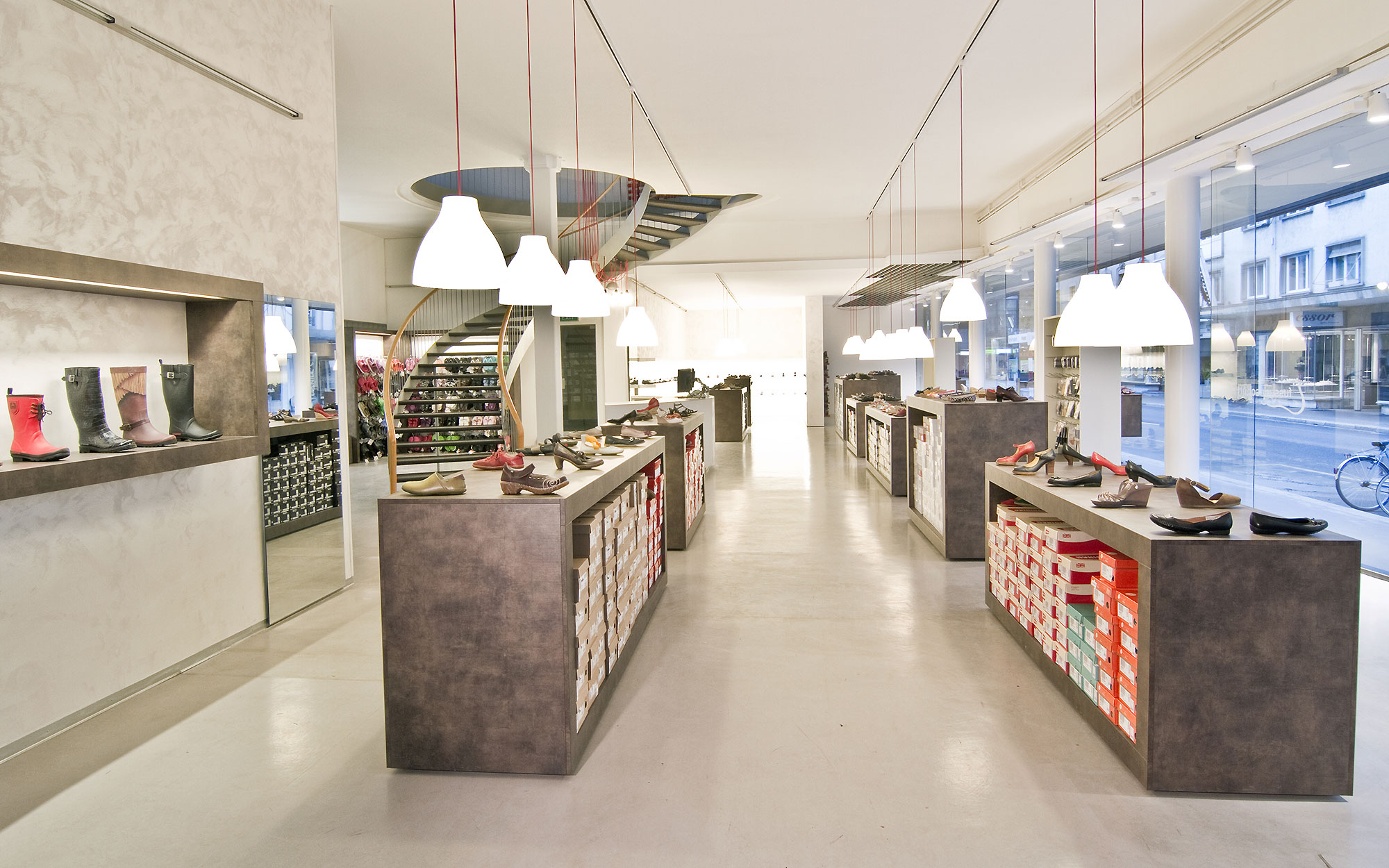 Der neue Bieler Schuhladen „Fussundschuh“ für Casual und Orthopädie präsentiert sich nach dem Umbau grosszügig und anpassungsfähig. Die Ladeneinrichtung ist in vier Zonen auf zwei Geschossen unterteilt. Die Rollkuben ermöglichen ein flexibles Bespielen der weiträumigen Fläche, während der Orthopädiebereich diskret im Hintergrund angesiedelt ist. Das Beleuchtungskonzept und der Kronleuchter sind speziell für das Objekt entwickelt worden und verleihen dem Laden den gewünschten „urban chic“. Die Verantwortlichen haben sich bereits vier Wochen nach der Eröffnung über neue Kundengruppen freuen können, die dank des zeitgemässen, frischen Auftritts den Weg zu ihnen finden. Wir danken für die angenehme Zusammenarbeit und wünschen Fussundschuh weiterhin viel Erfolg!