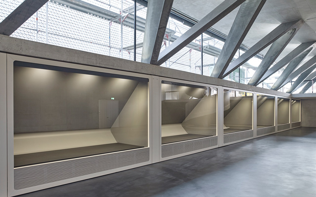 Neun Türflügel mit einer Breite von je 3,6 Metern, einer Höhe von 2,6 Metern und einer totalen Länge von über 35 Metern sind ganz schön gross – selbst für grosse Vitrinen!