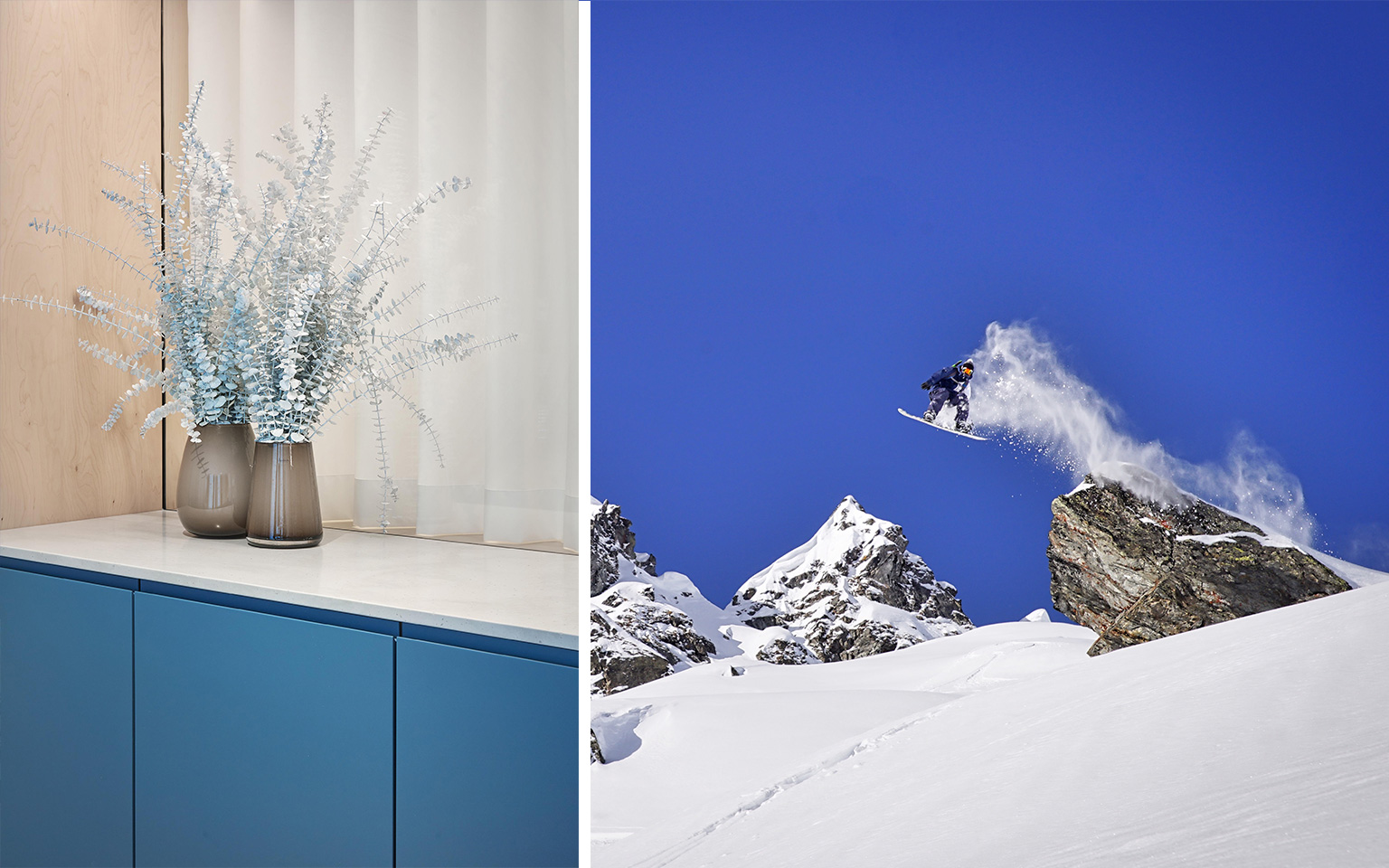 Uns war schnell klar, dass unsere Kunden bergwelt- und bergsportbegeistert sind und diese Motive die Gestaltung der Bank prägen werden. Es war ein Vergnügen, diese Themen in den Räumen zu inszenieren.