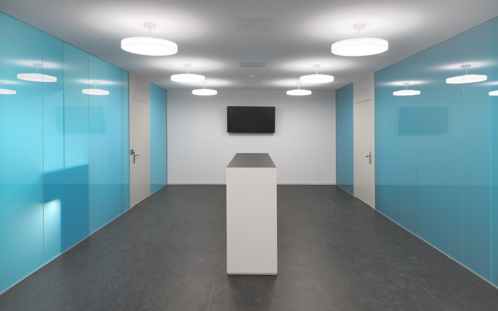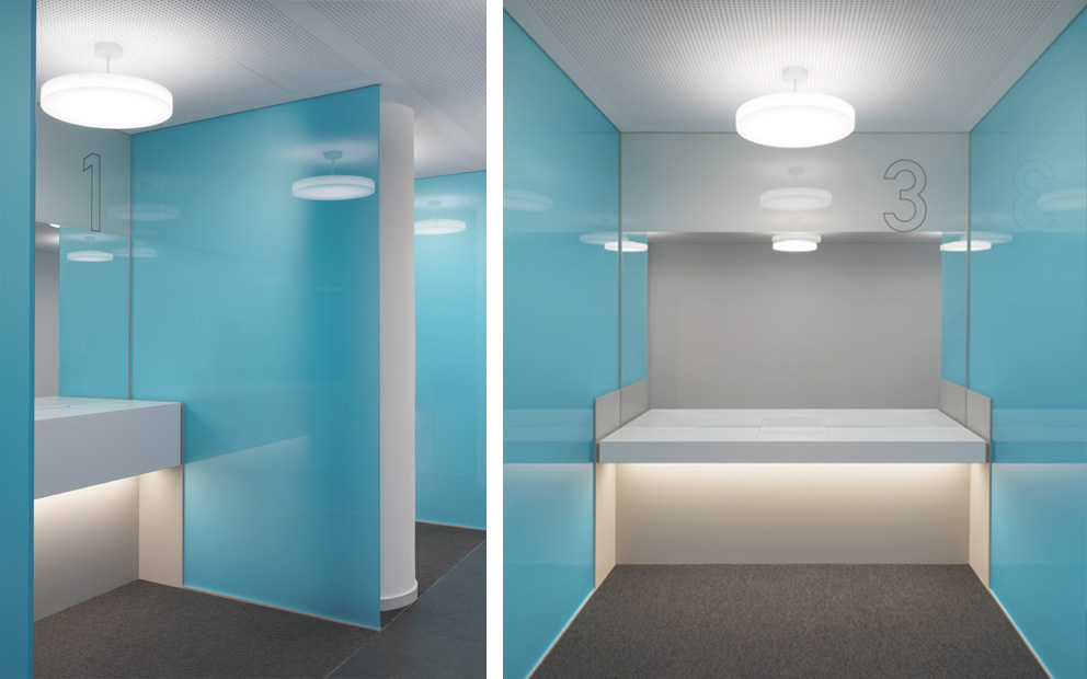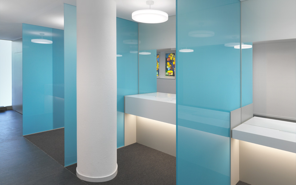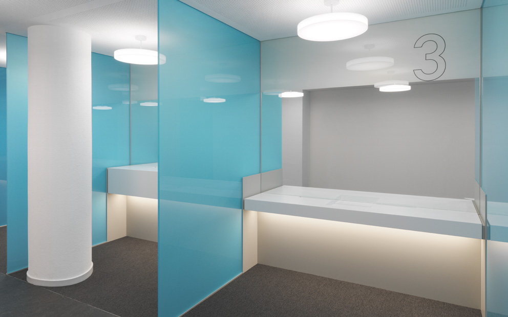 - Vier verglaste Sicherheitsschalter, einer davon nach SIA 500, für die wir Mineralwerkstoff und Lackfarbe eingesetzt haben