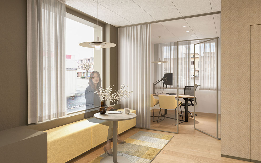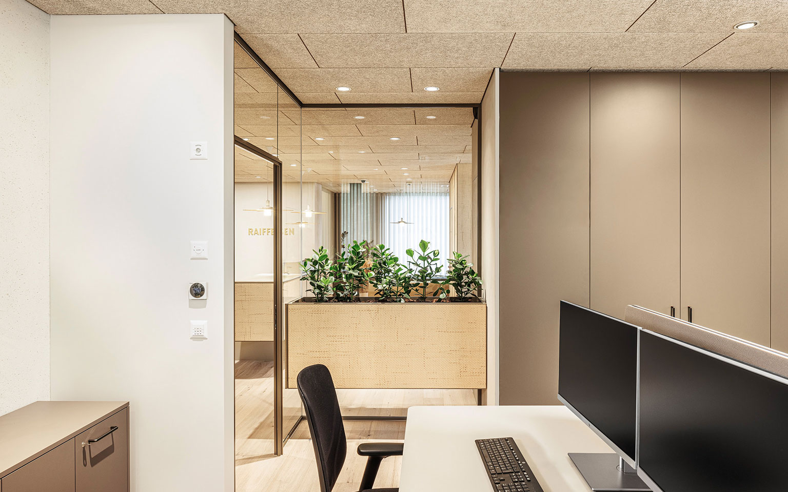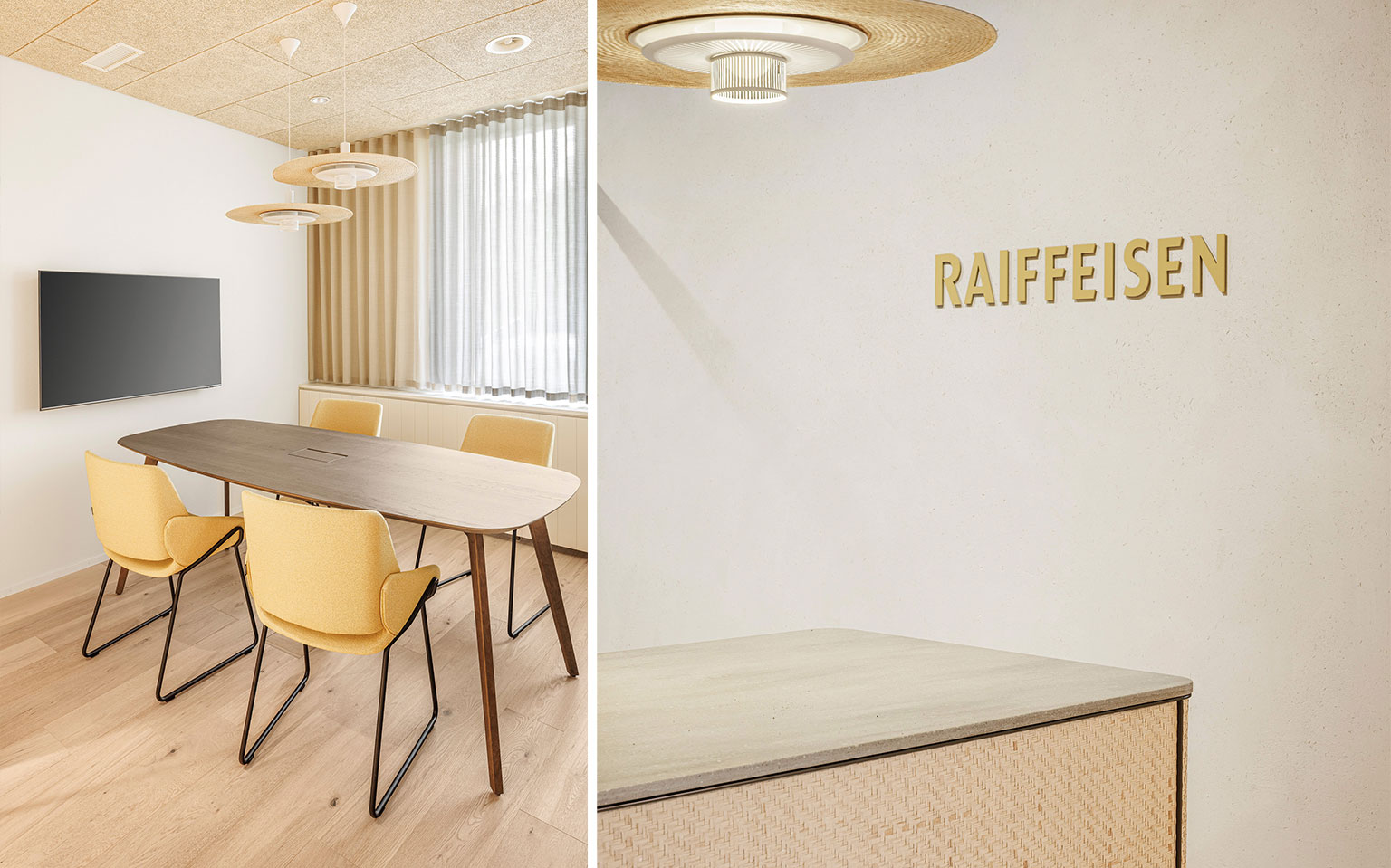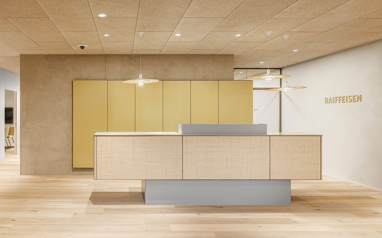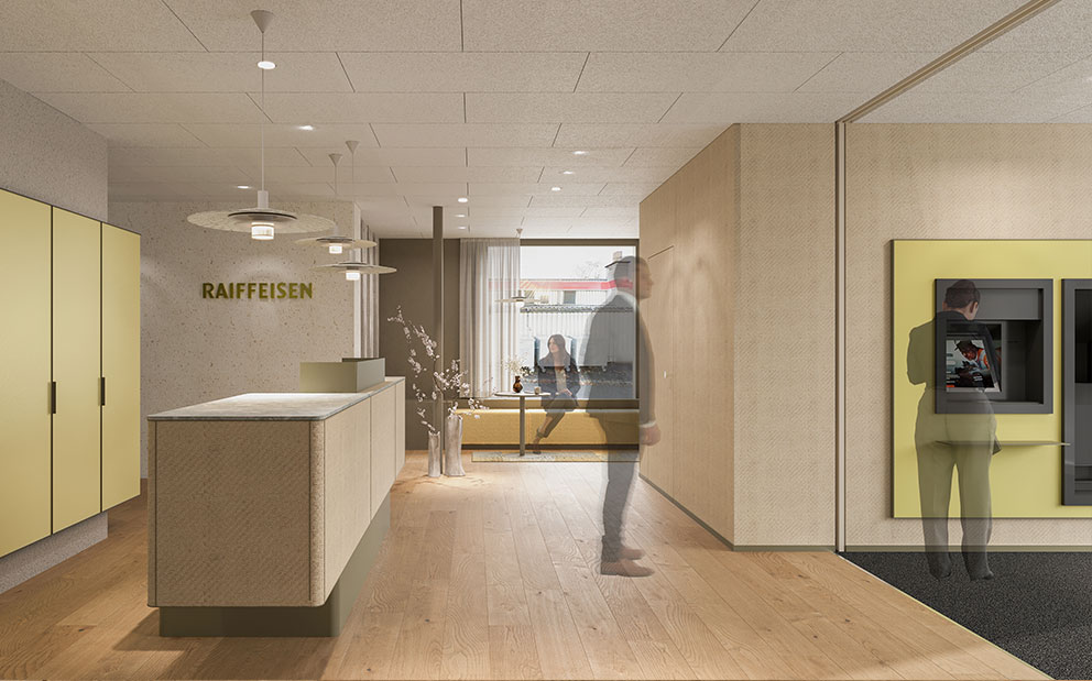 Die Raiffeisenbank Mutschellen hat ihre Geschäftsstelle in Berikon umfassend modernisiert und rundum erneuert. Wir waren für die Architektur und Innenarchitektur verantwortlich und haben ein Konzept entwickelt, das regionale Tradition mit moderner Bankarchitektur verbindet. Inspiriert von der historischen, regionalen Strohverarbeitung prägen natürliche Materialien, warme Farbtöne und nachhaltige Lösungen die Gestaltung. Trotz der Flächenreduktion von zwei auf eine Etage entstand dank intelligenter Planung ein neues, einladendes Raumgefühl, das Offenheit und Kundennähe vermittelt. Nachhaltigkeit zeigt sich nicht nur in der Materialwahl und der Fassadensanierung, sondern auch in der Umnutzung bestehender Flächen: Aus ehemaligen Bankräumen wurden Wohnungen geschaffen — ein Beispiel für effiziente Flächennutzung und zukunftsfähige, verdichtete Architektur im kleinen Massstab.