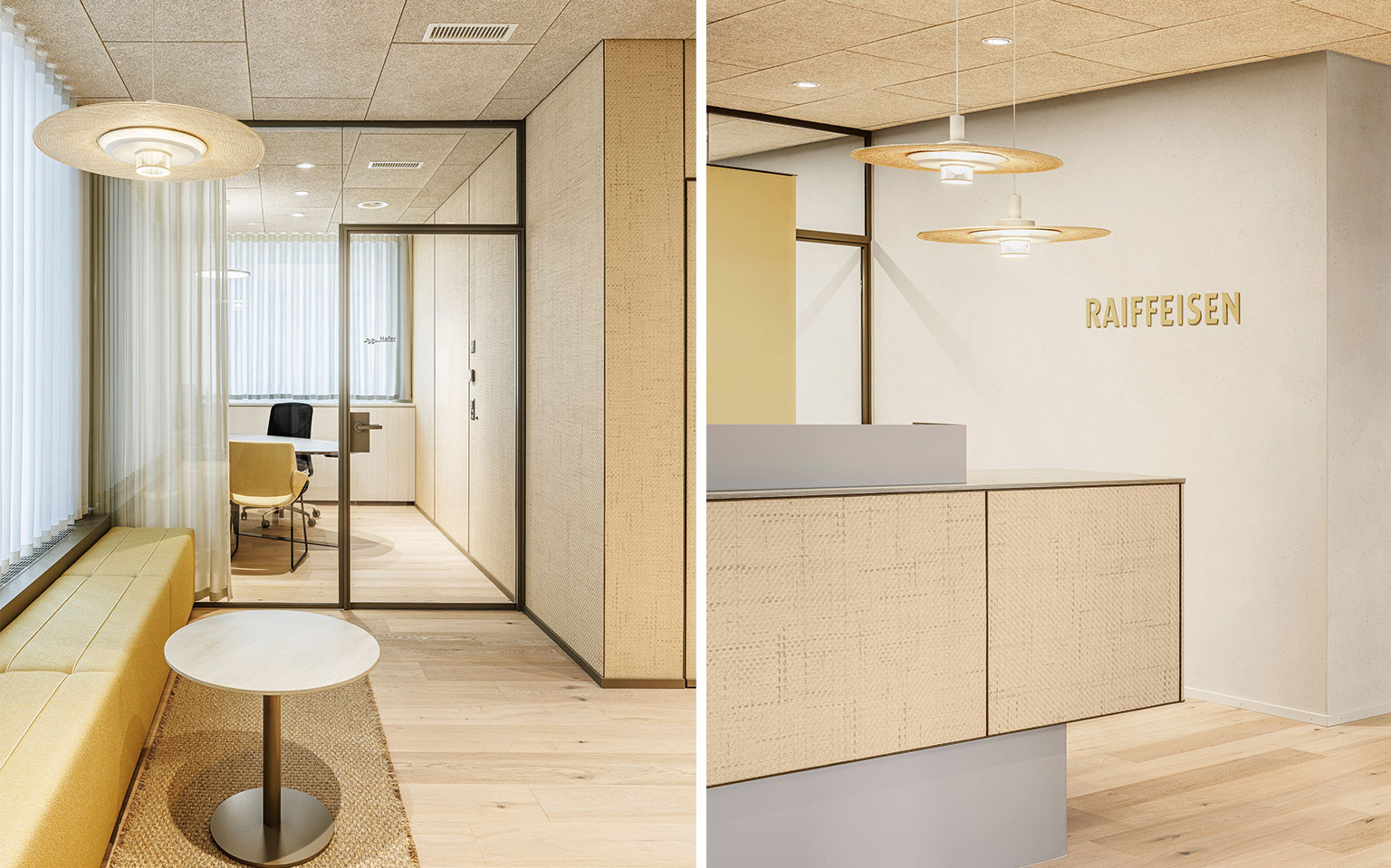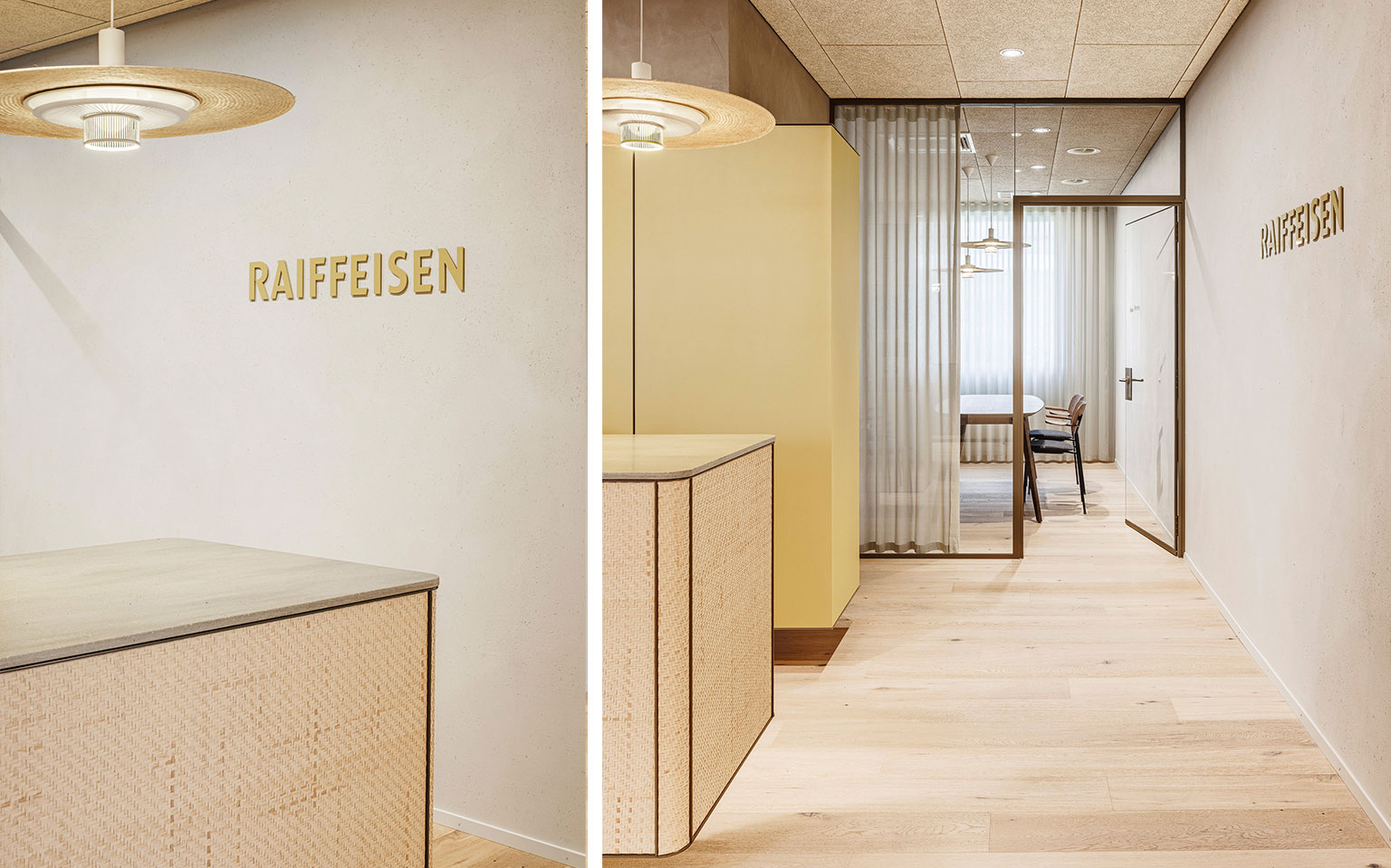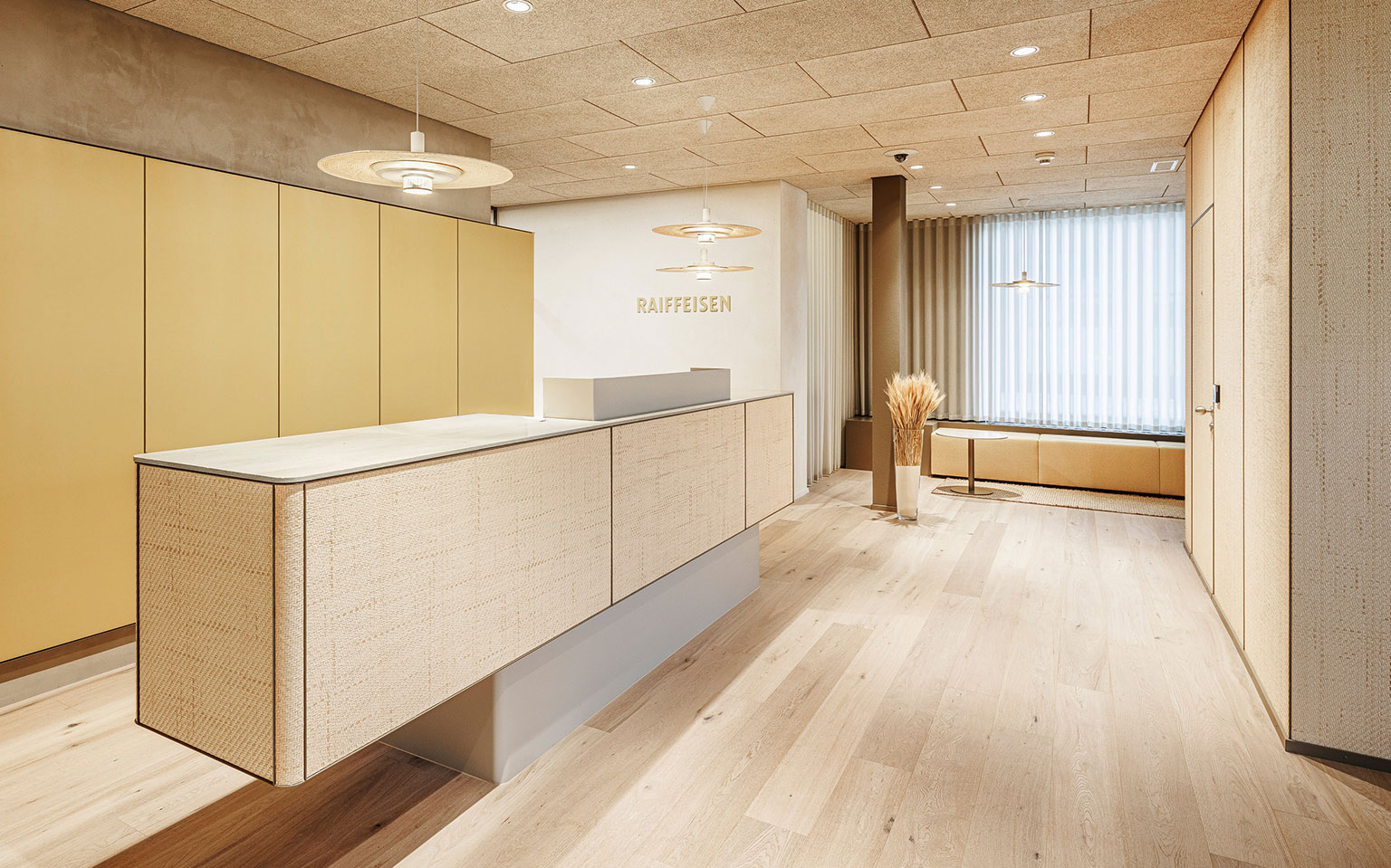 Das Innenarchitekturkonzept ist stark von der kulturellen Identität der Region Berikon geprägt. Im 19. Jahrhundert war die Gegend ein bedeutendes Zentrum der Strohverarbeitung. Diese historische Bedeutung floss direkt in das Designkonzept ein: Natürliche Materialien wie Stroh und Holz sowie warme Farbnuancen schaffen eine authentische, einladende Atmosphäre und eine Verbindung zwischen regionaler Tradition und modernem Bankdesign.