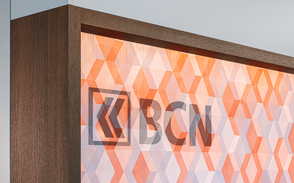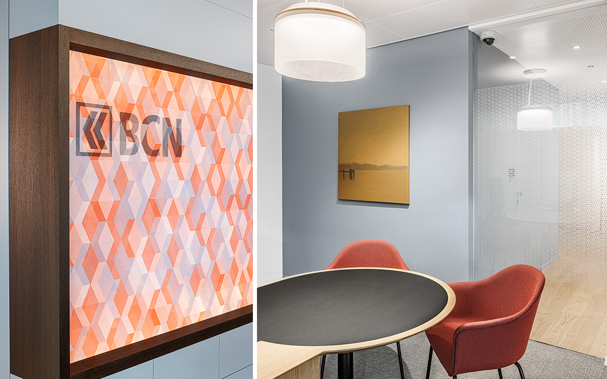 Die neue Lichtführung schafft eine intuitive Orientierung: Besucher*innen werden natürlich zum Empfangstresen unter einer rückseitig beleuchteten Decke geleitet. Der ehemalige Tresorraum dient heute als grosse Besprechungssuite – ein ruhiger Ort für vertiefte Gespräche.