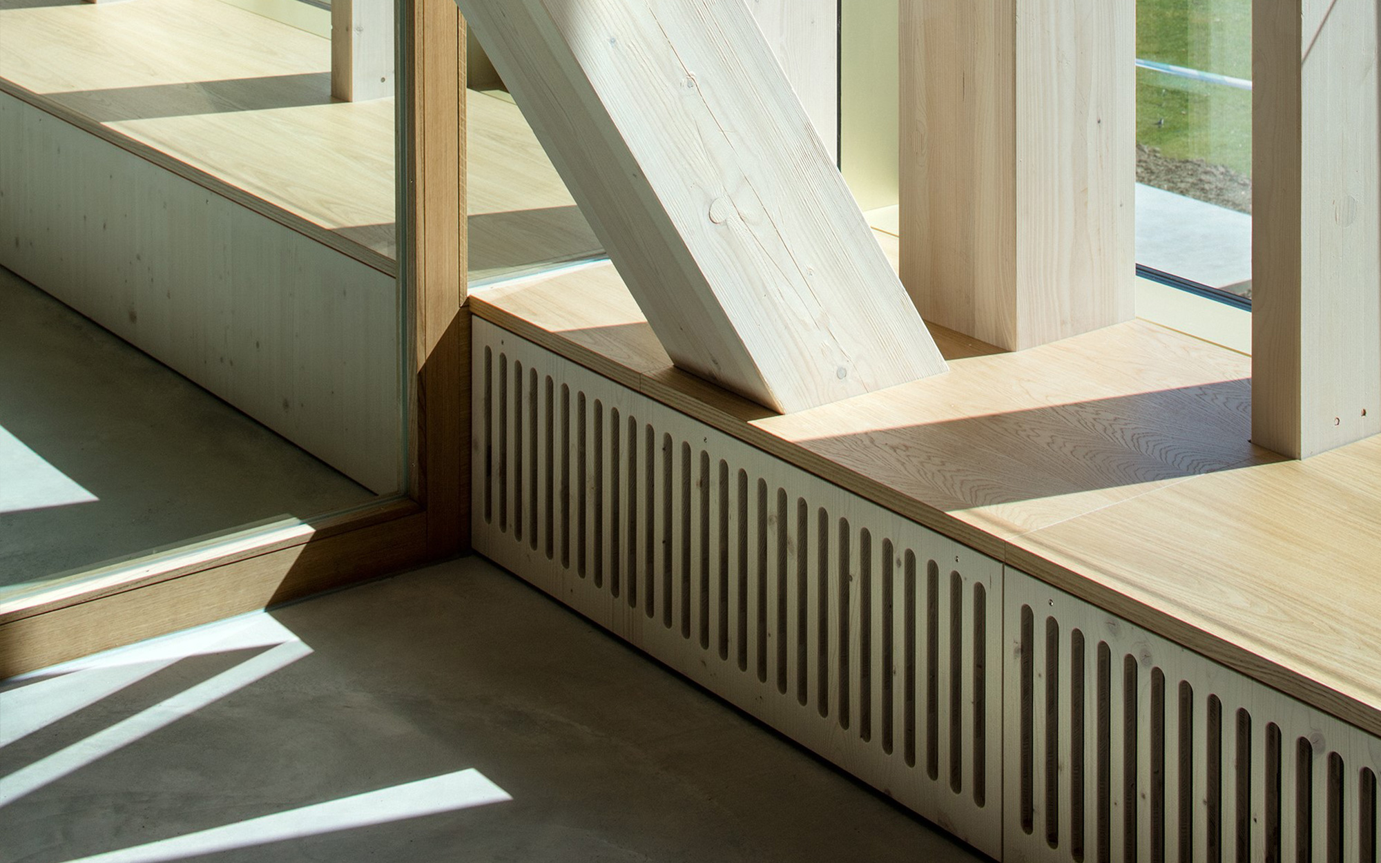 Wir haben einen Teil der anspruchsvollen Brüstungsverkleidungen in diesem interessanten Bauprojekt realisiert und dabei verschiedene Funktionen wie Stauraum oder Lüftungen für Heizungskörper integriert. Die Oberflächenbehandlung der Holzteile erfolgte mit Wasserlack.
