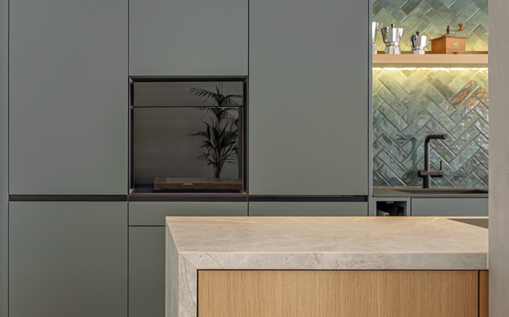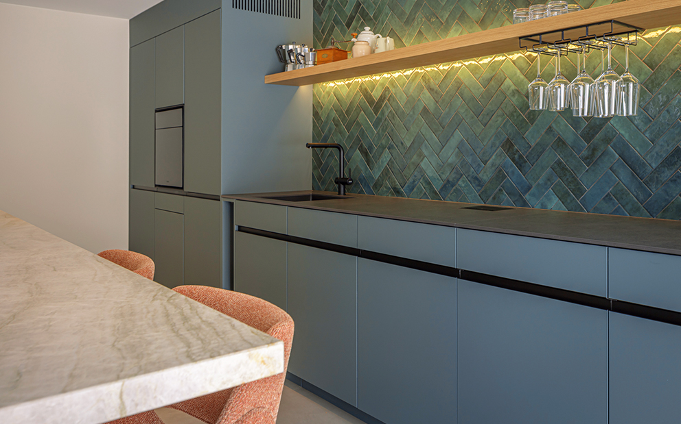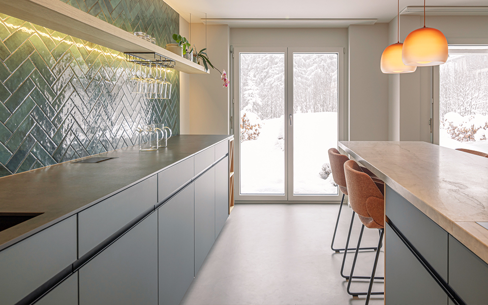 Das Herzstück bildet die neue Küche, ein sozialer Mittelpunkt, funktional durchdacht, präzise umgesetzt und gestalterisch so integriert, dass sie vom ersten Kaffee am Morgen bis zum Apéro mit Freunden selbstverständlich den Raum prägt.