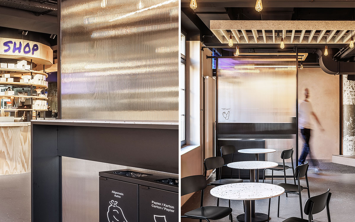 Die Gestaltung ist urban, roh und lebendig — geprägt von rezyklierten Materialien, bewusst ohne grosse Veredelung. So ist ein Ort mit Charakter entstanden, der den Gedanken der Kreislaufwirtschaft auch räumlich sichtbar macht.